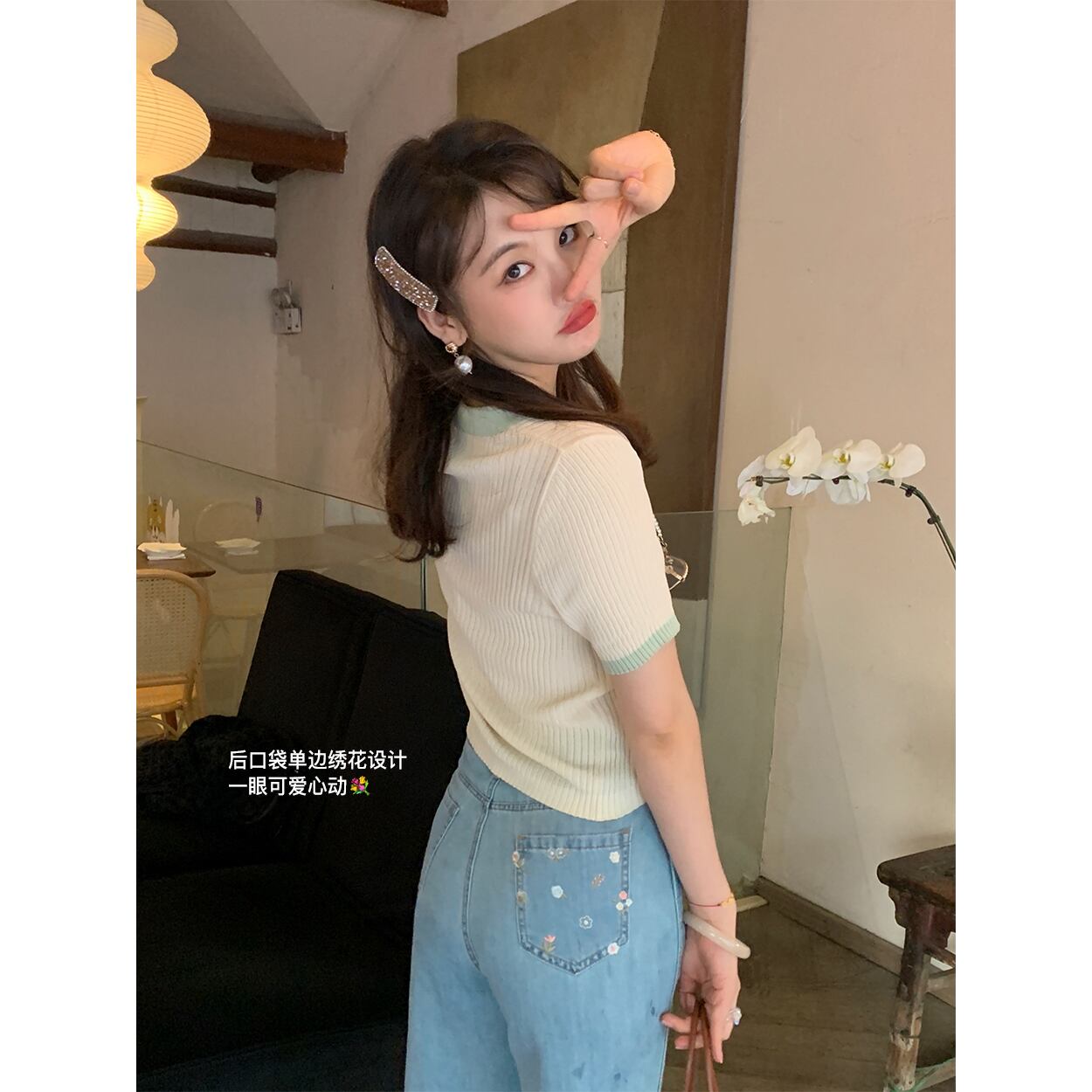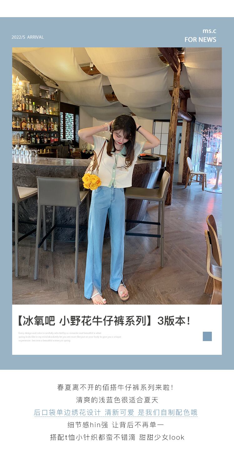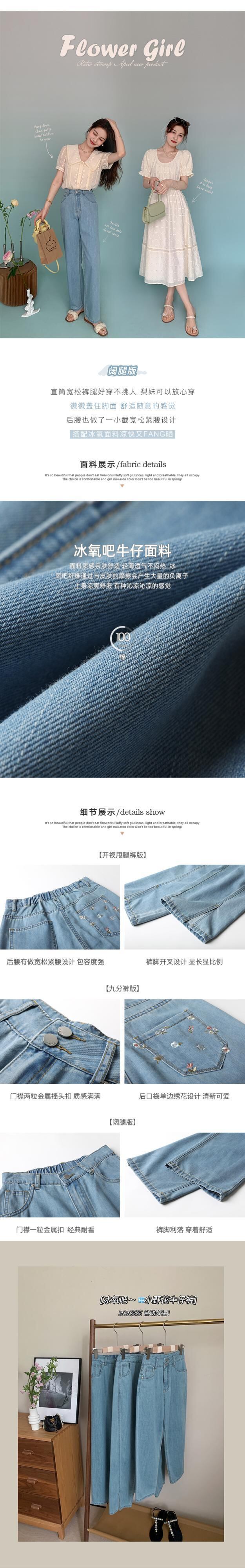 ミスシマリス[酸素バースモールワイルドフラワージーンズ]ウエストストレートワイドレッグパンツレディースサマー薄片 missi86668199988