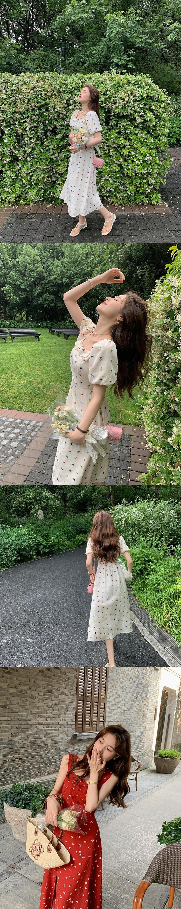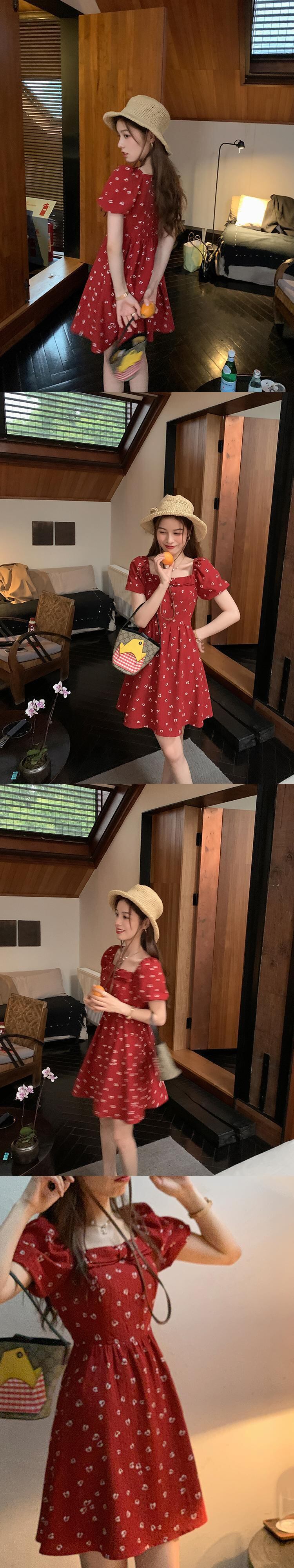 ミスシマリス【5月ギフトスカート】スウィートスクエアネックワンピースレディースサマースモールサスペンダースカート missi70462197710