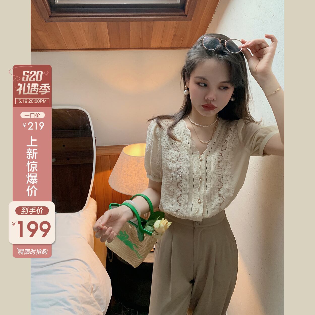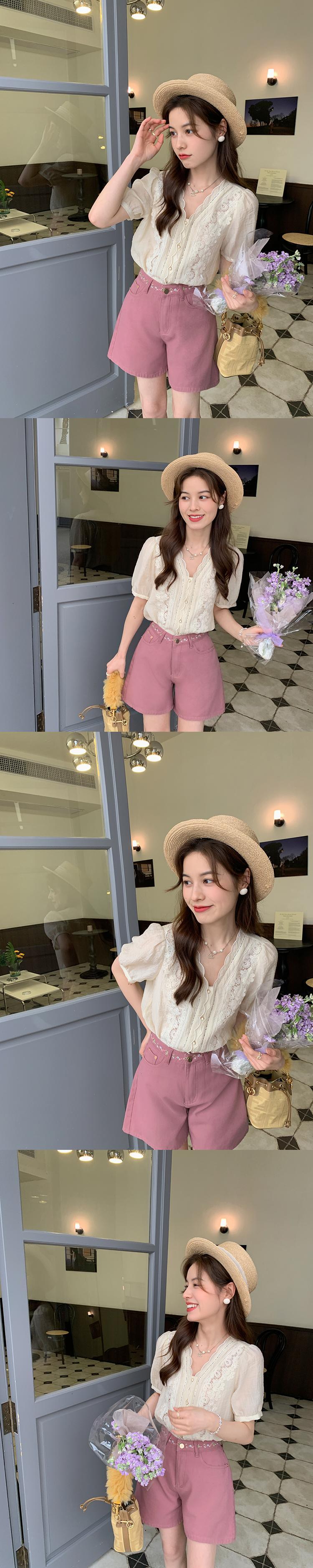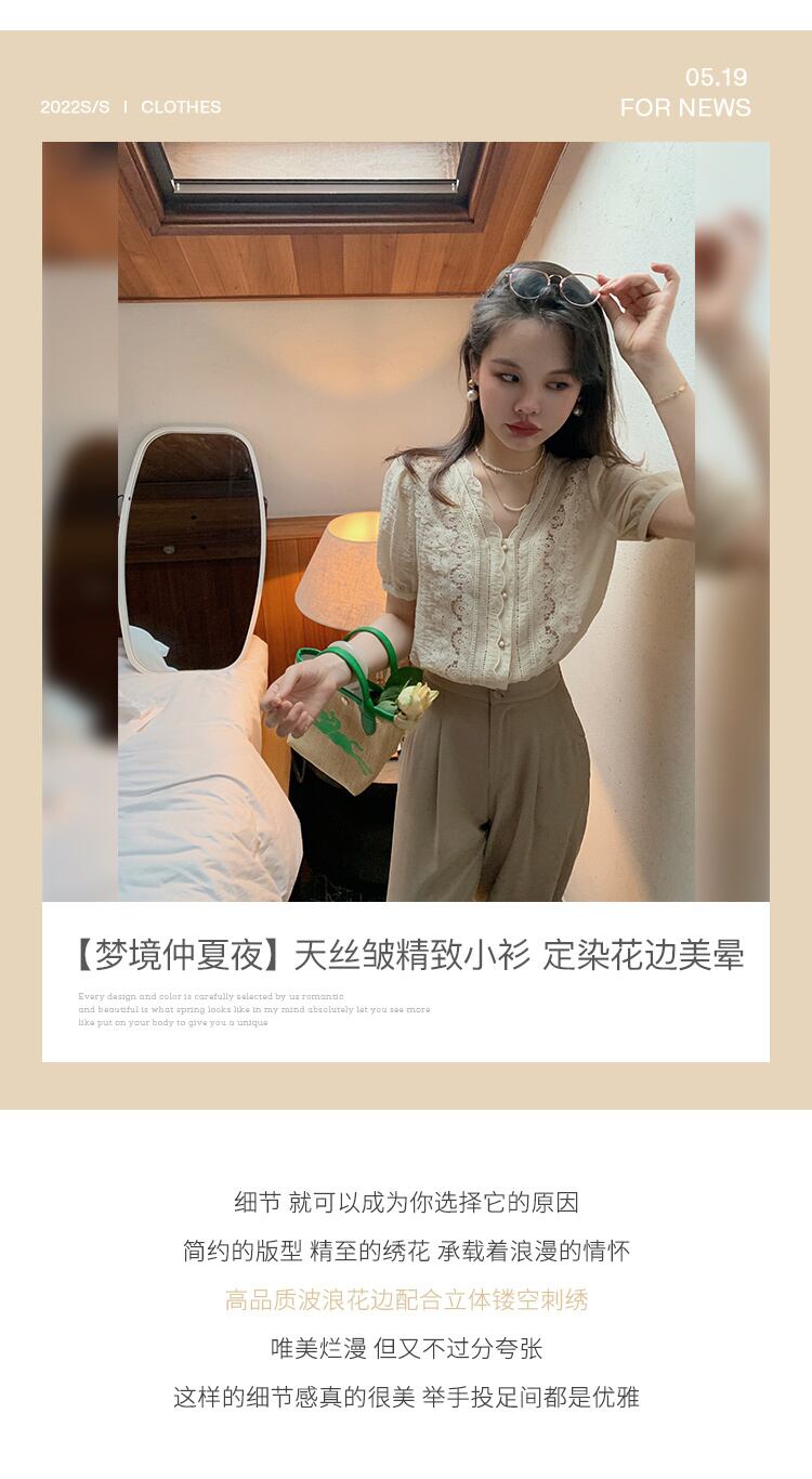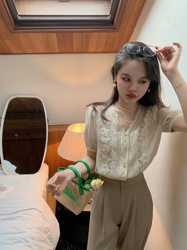 ミスシマリス[ドリームランド真夏の夜]テンセルしわのある絶妙なスモールシャツレディースサマー半袖レースシャツトップ missi99212863757