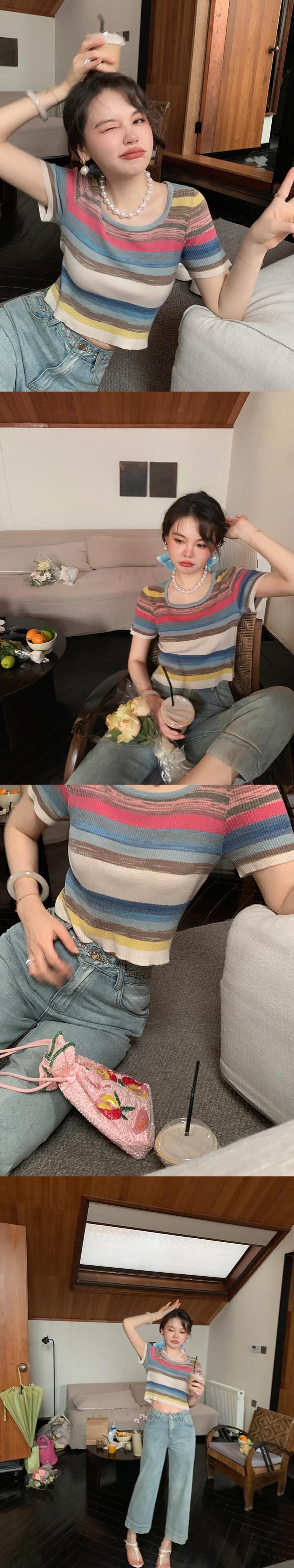 ミスシマリス[ペニンシュラギャラリーニット]7バージョン半袖Tシャツレディースサマーオールマッチショートトップ missi40923505571