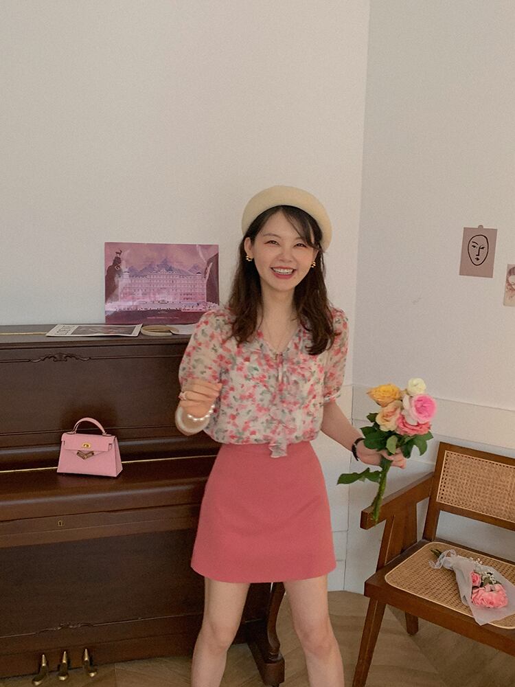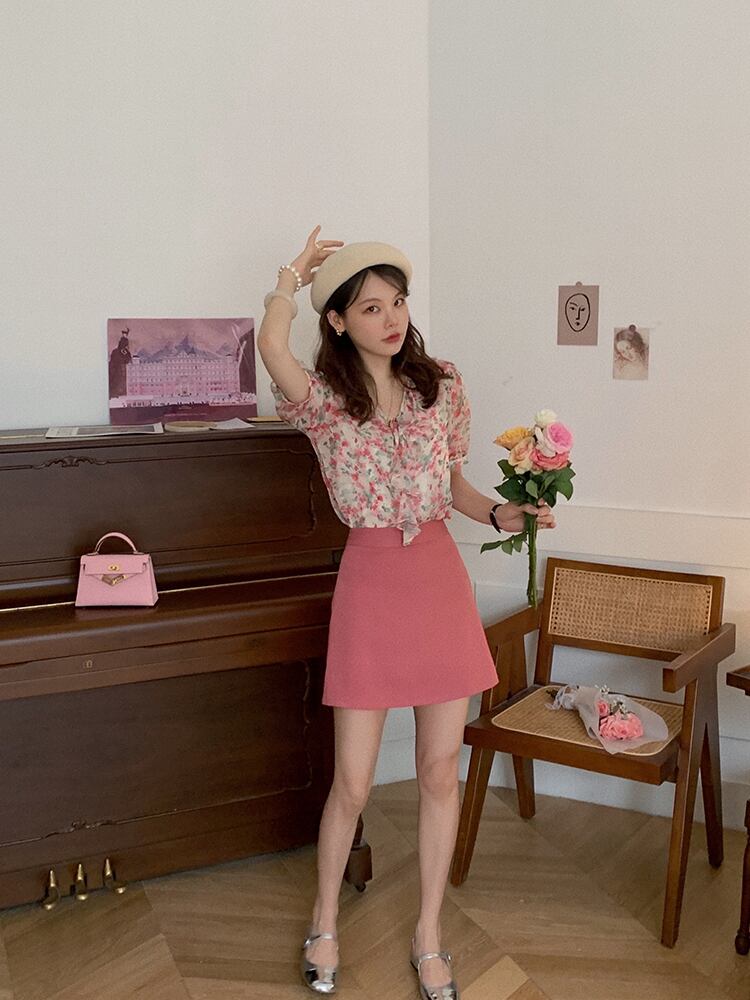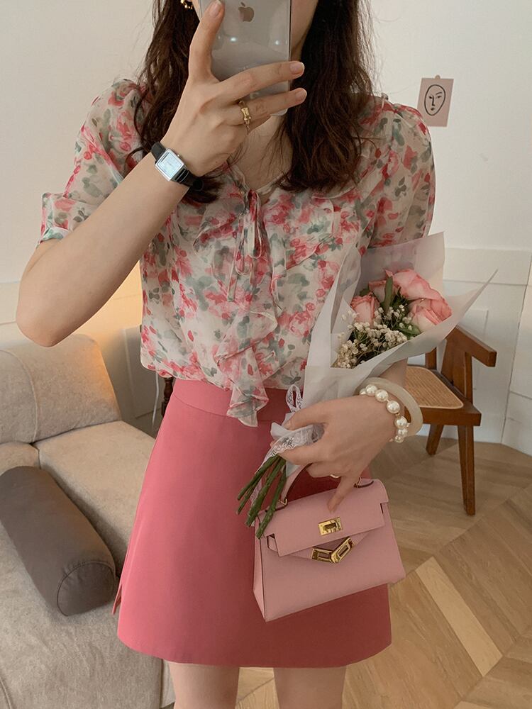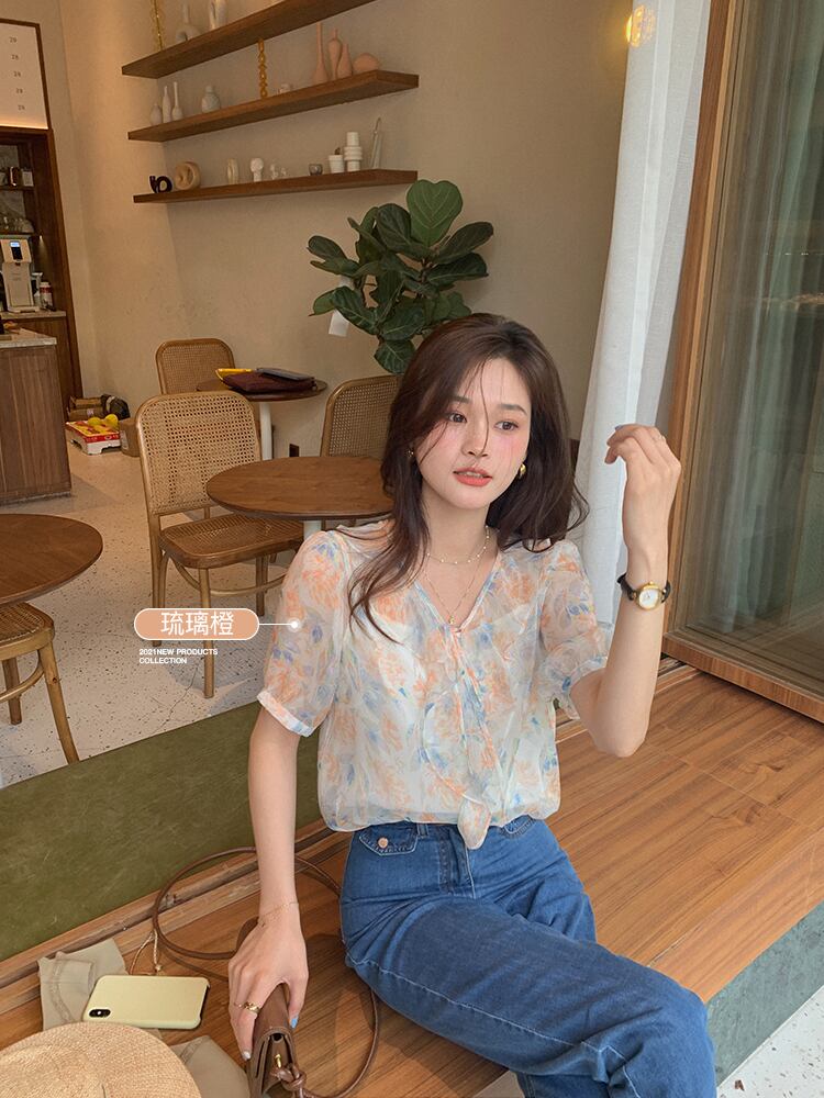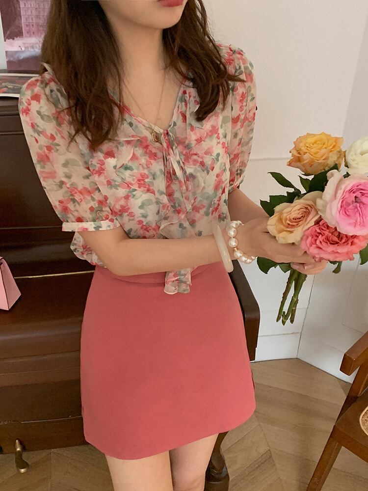 ミスシマリスクリアランス【シークレットガーデン】フェアリーシフォンシャツフローラルVネックシャツ missi21989262403