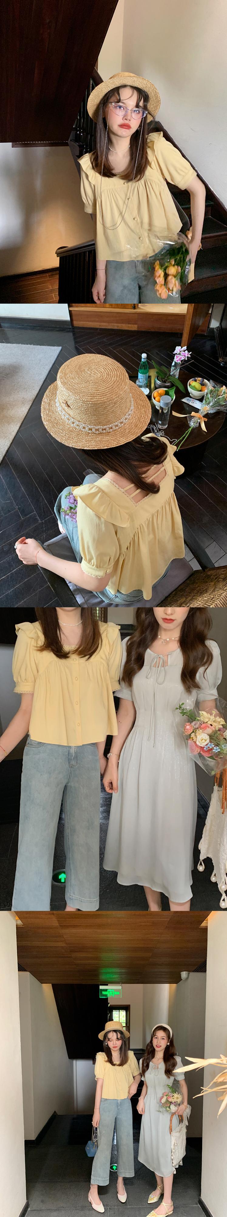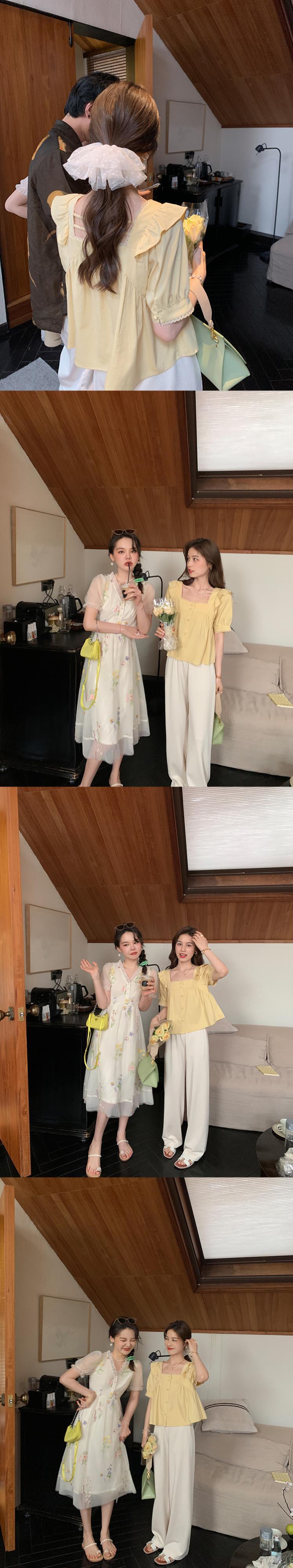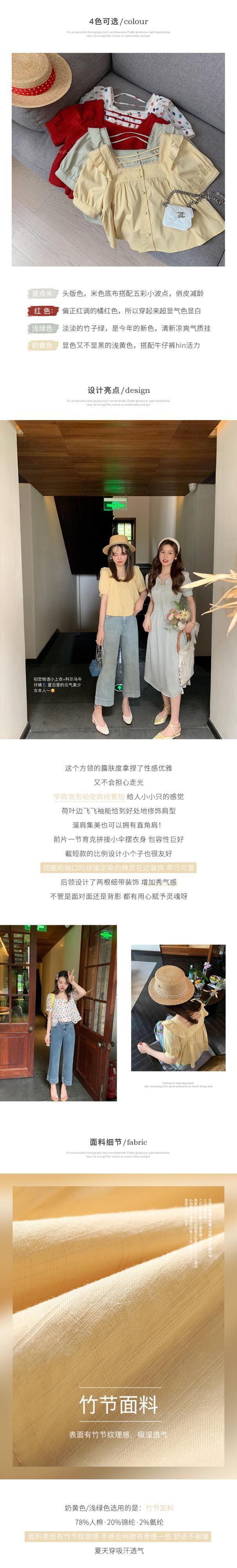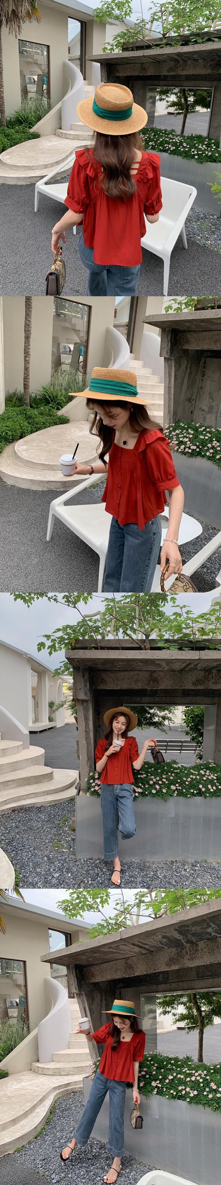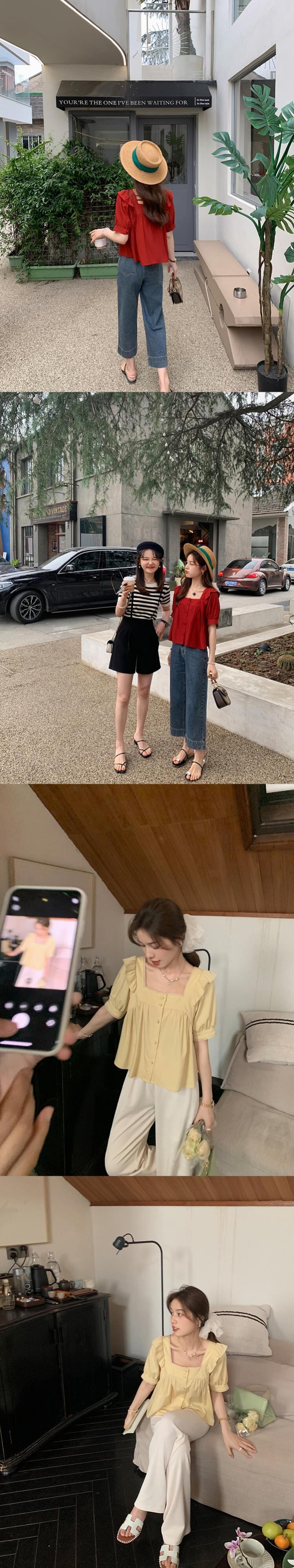 ミスシマリス[初恋物語]フェイフェイスリーブスクエアカラートップレディースサマークオリティシフォンショートシャツ missi4981991315