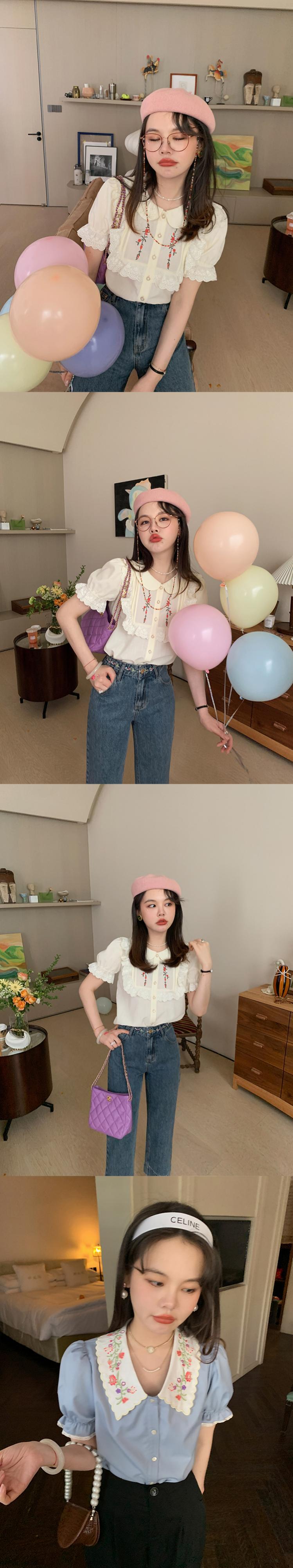 ミスシマリス[ジーランディアガール]重工業刺繡シャツレディースサマーレースセンストップ missi57443628378