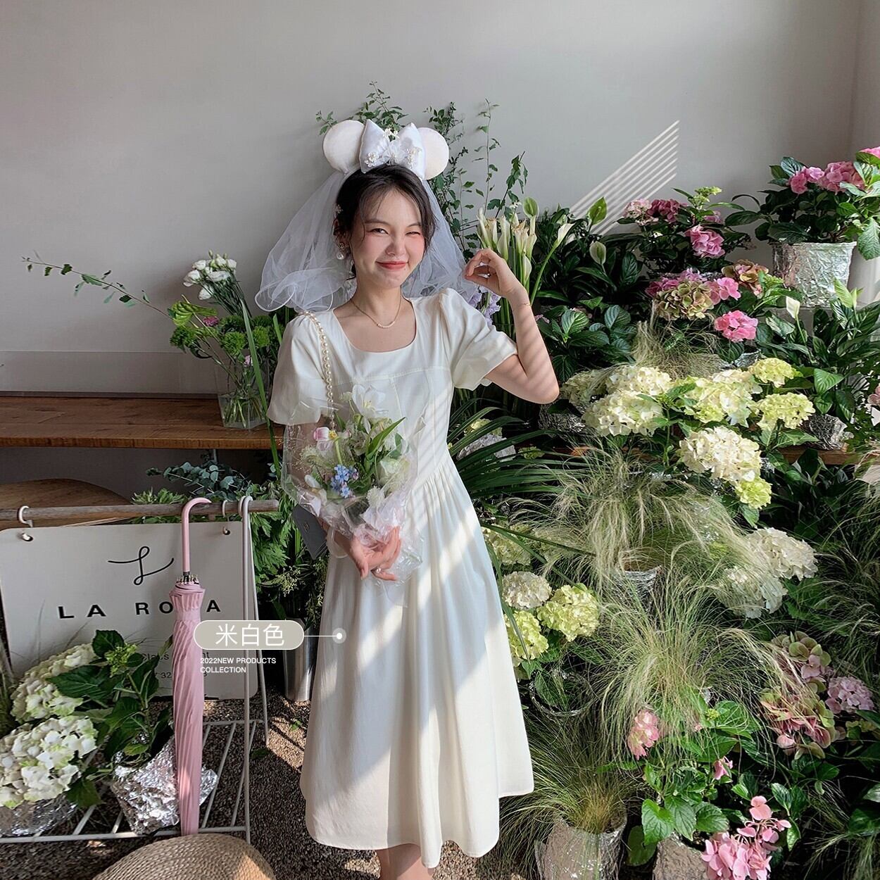 ミスシマリス[サマーワルツ]フレンチホワイトドレス女性サマースモール気質ウエストスカート missi85947218227