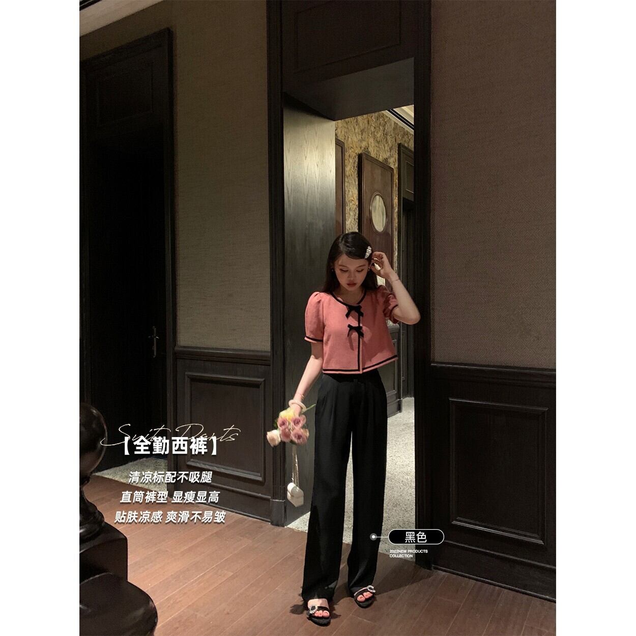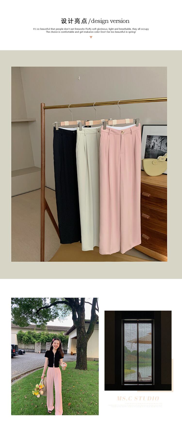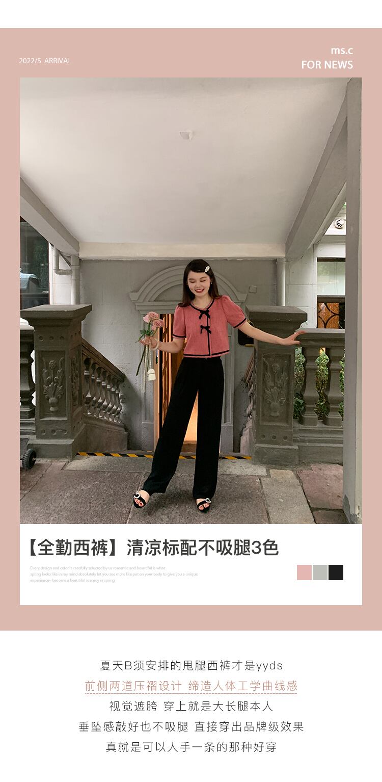 ミスシマリス【Quanqinパンツ】ドレープレッグスウィングパンツレディースサマー薄手ワイドレッグハイウエストストレートレッグカジュアルパンツ missi17914406894