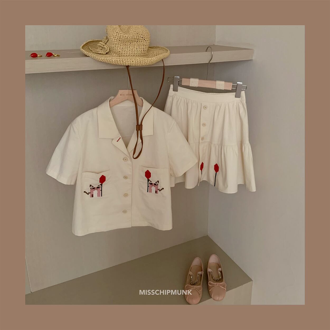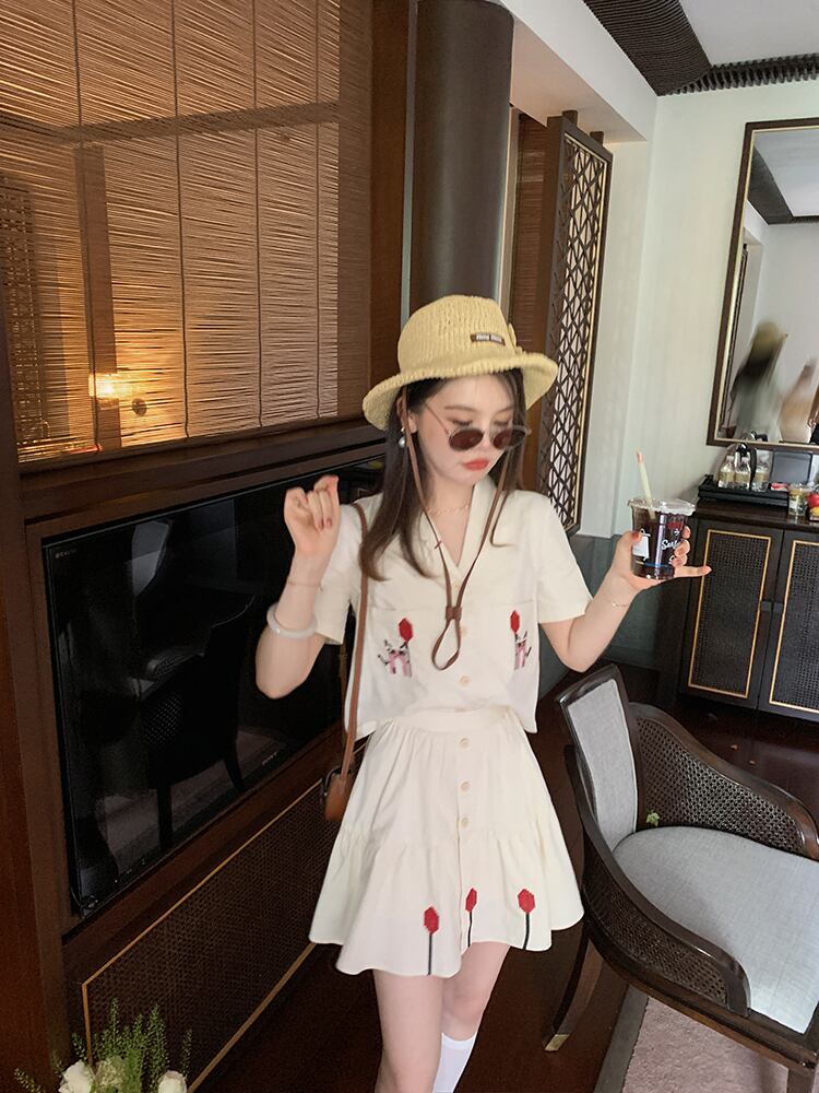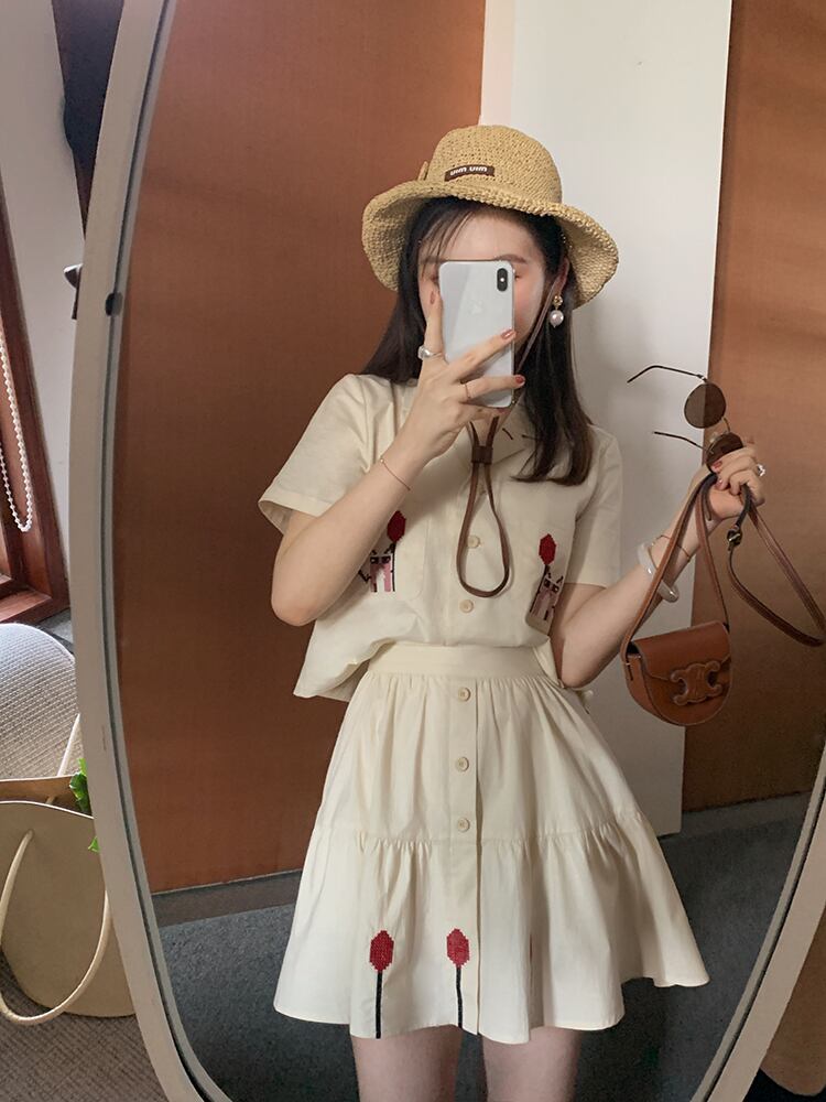 ミスシマリス[リトルモンスタースーツ]刺繡トップとスカートツーピースサマースモール missi98276367238