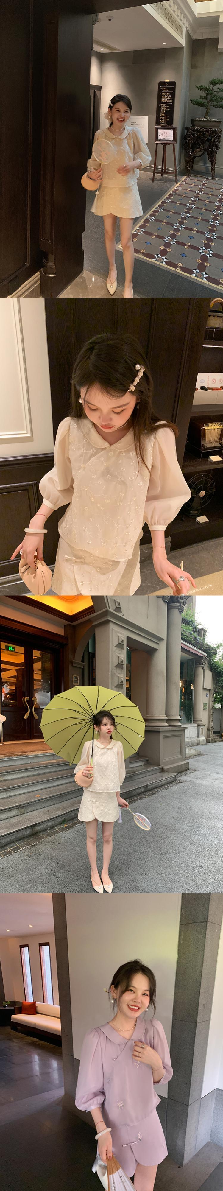 色:ブラウス明るい翡翠白,ハーフスカート明るい翡翠白,トップルージュパウダー,スカートルージュパウダー,トップライラックパープル,スカートライラックパープル,トップスブライトジェイドホワイト〜プレセール8〜15営業日,トップホワイトジェイド..プレセール15-18営業日