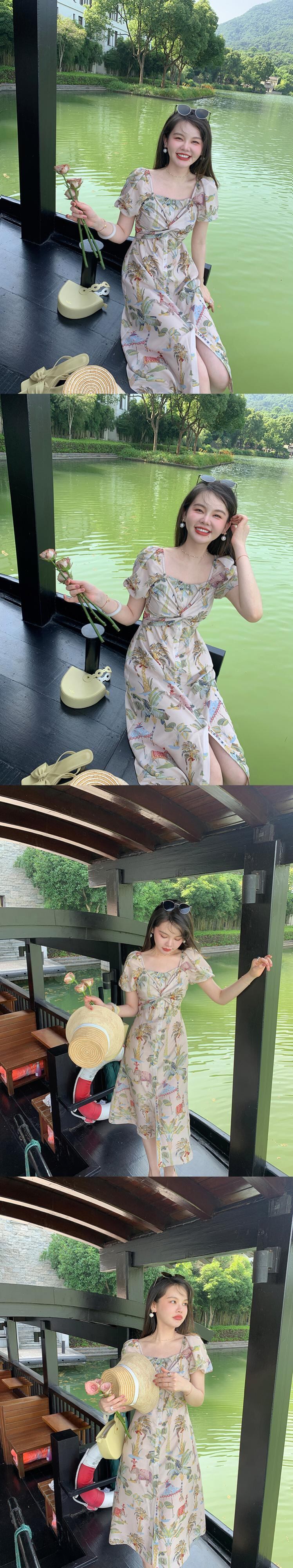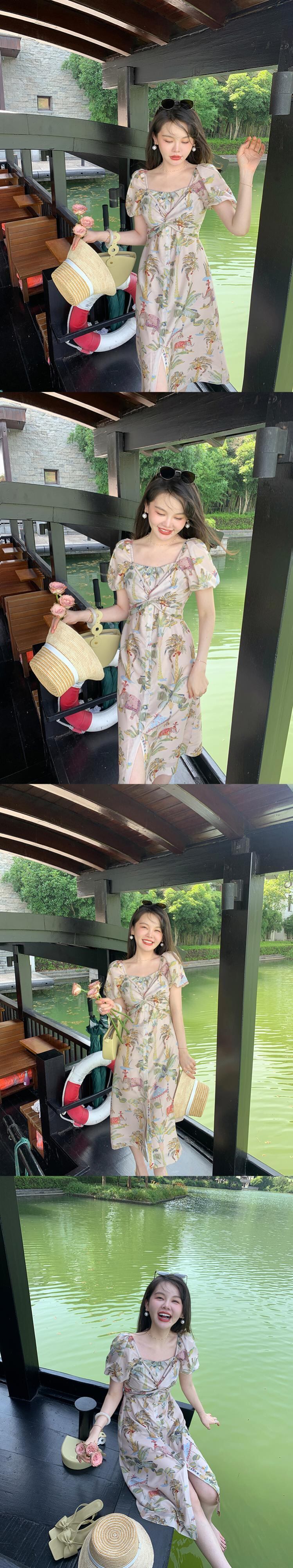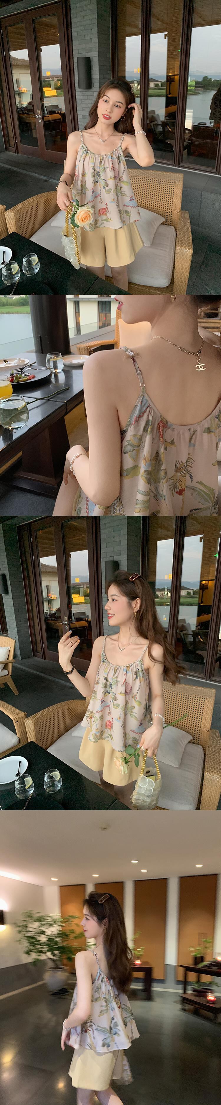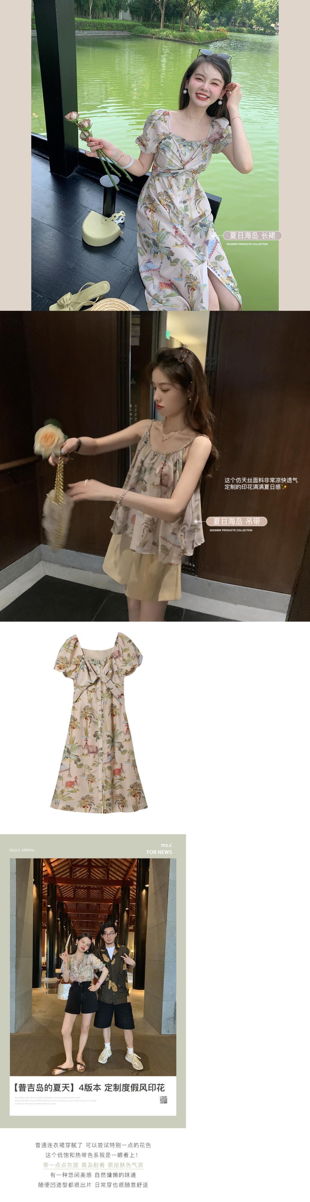 ミスシマリス[プーケットの夏]ホリデースタイルのプリントトップサスペンダースカートレディースサマードレス missi74876650056