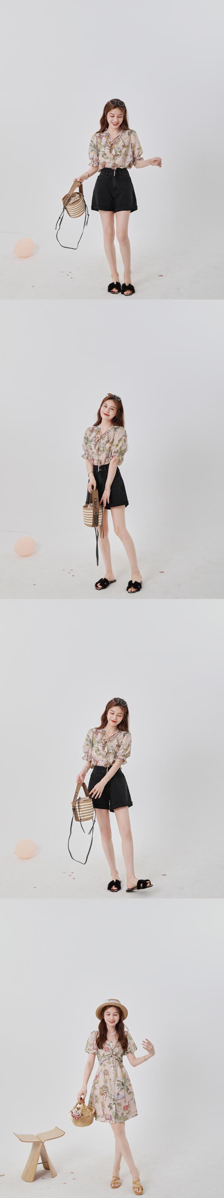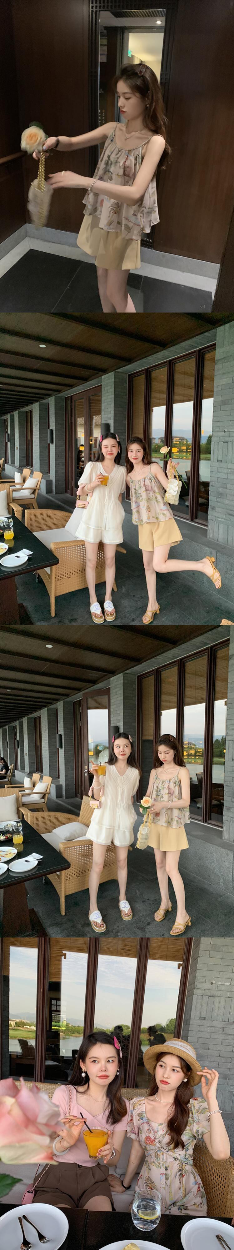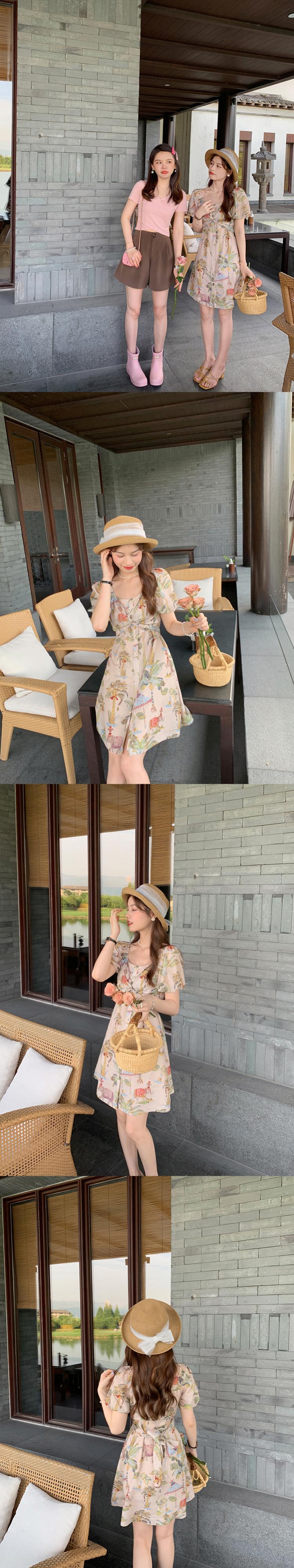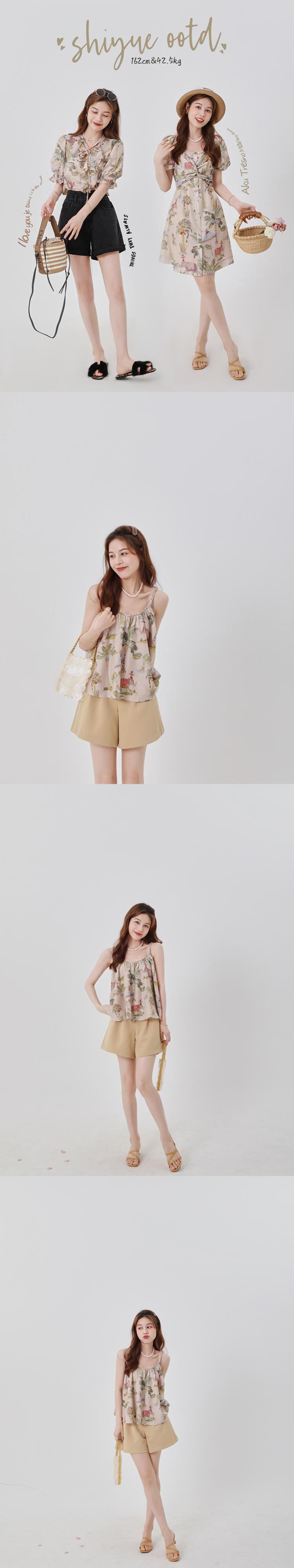 ミスシマリス[プーケットの夏]ホリデースタイルのプリントトップサスペンダースカートレディースサマードレス missi74876650056