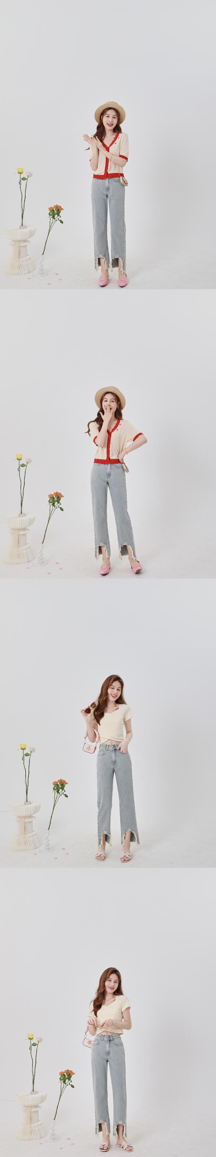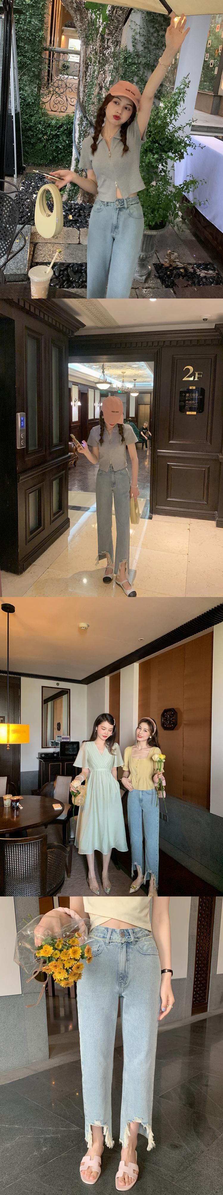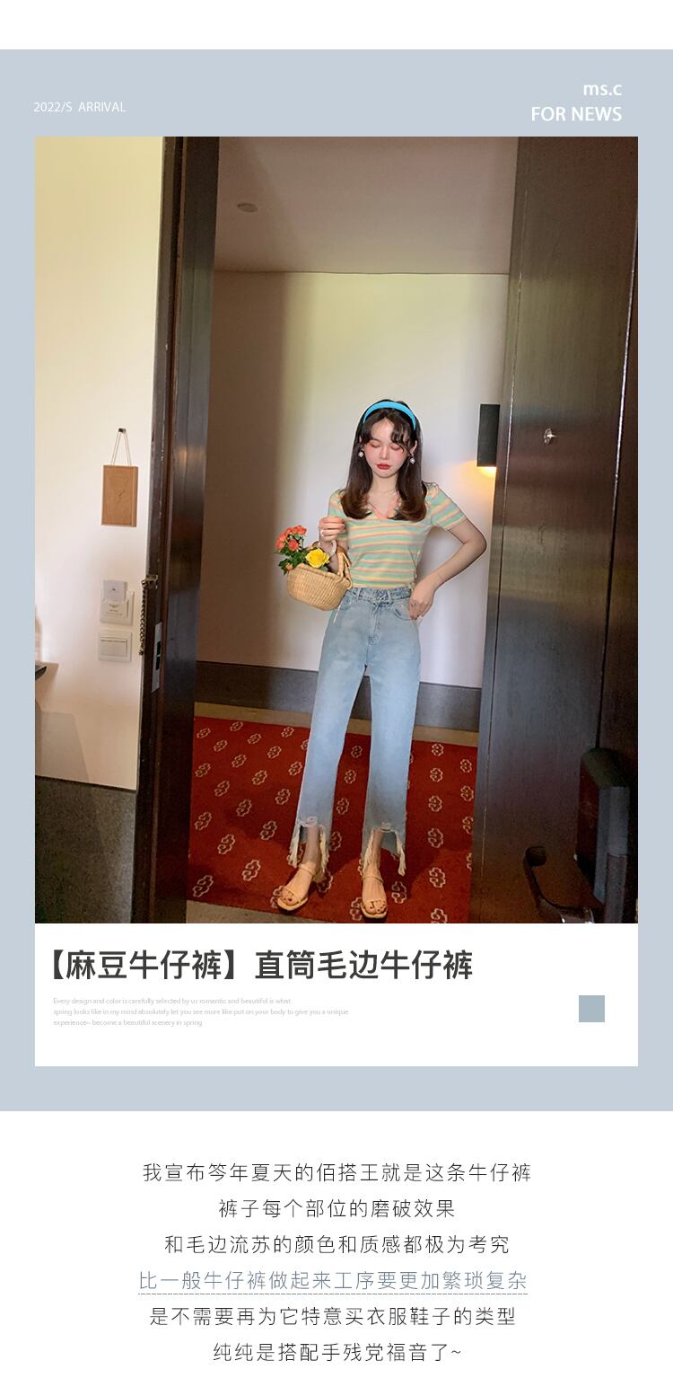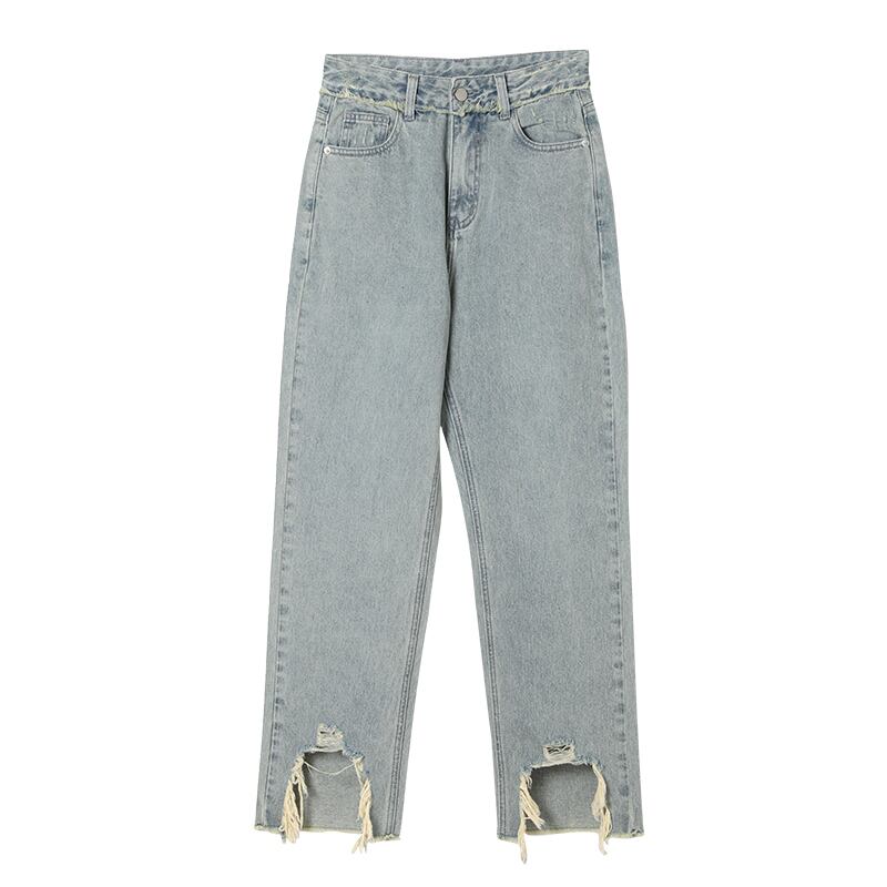 ミスシマリス[マドゥジーンズ]破れた穴生エッジワイドレッグパンツレディースサマー薄片ストレートウエスト薄 missi14406617652