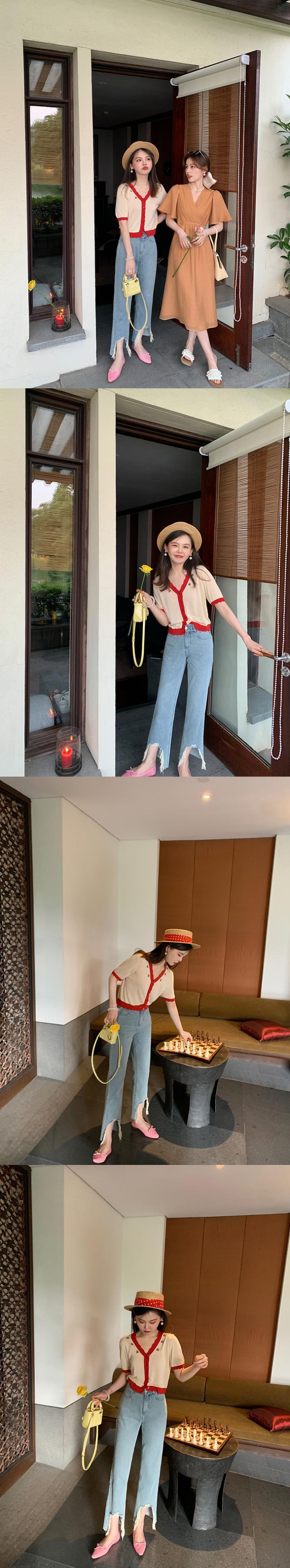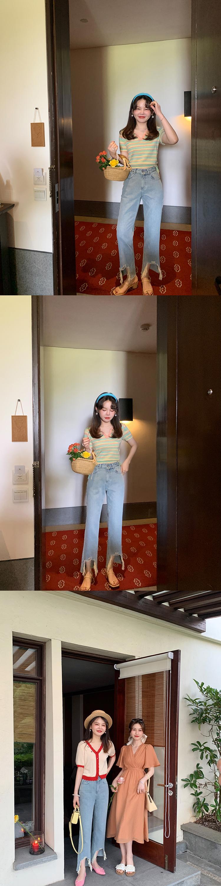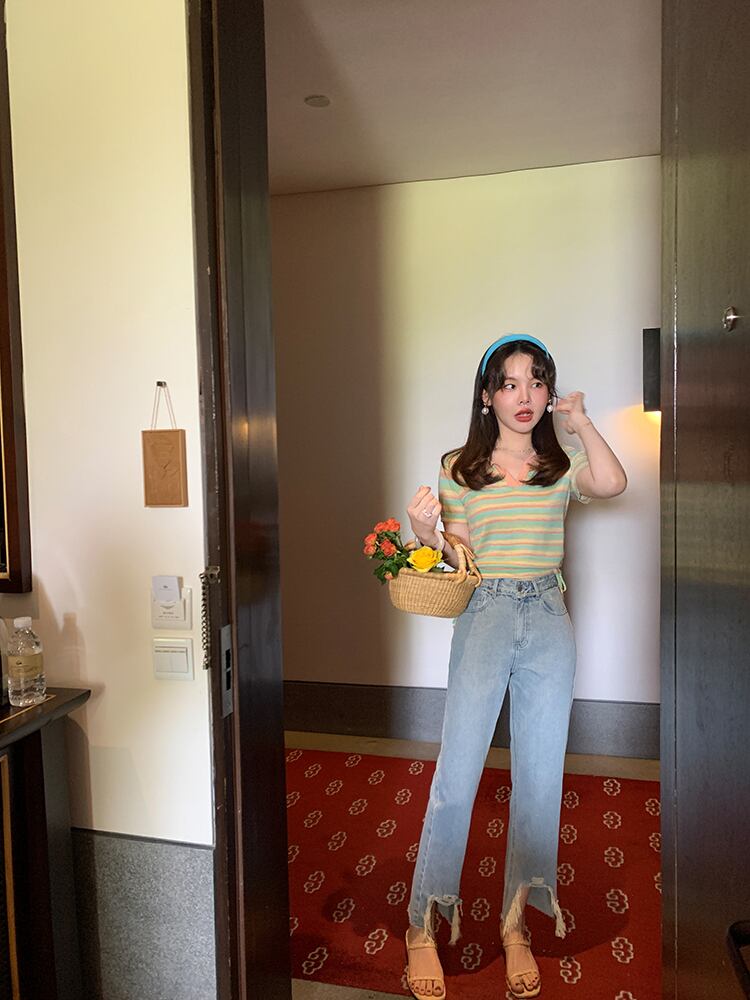 ミスシマリス[マドゥジーンズ]破れた穴生エッジワイドレッグパンツレディースサマー薄片ストレートウエスト薄 missi14406617652