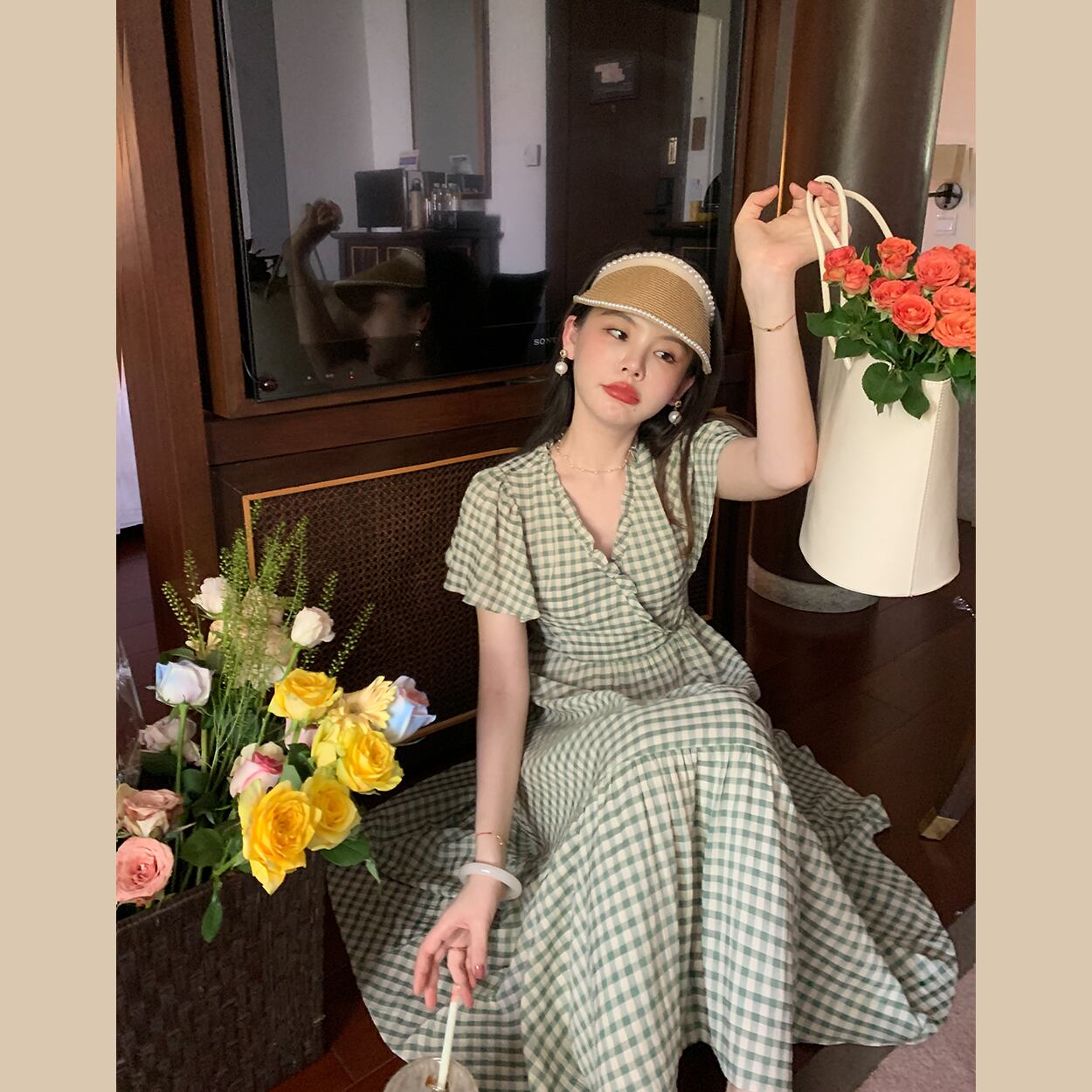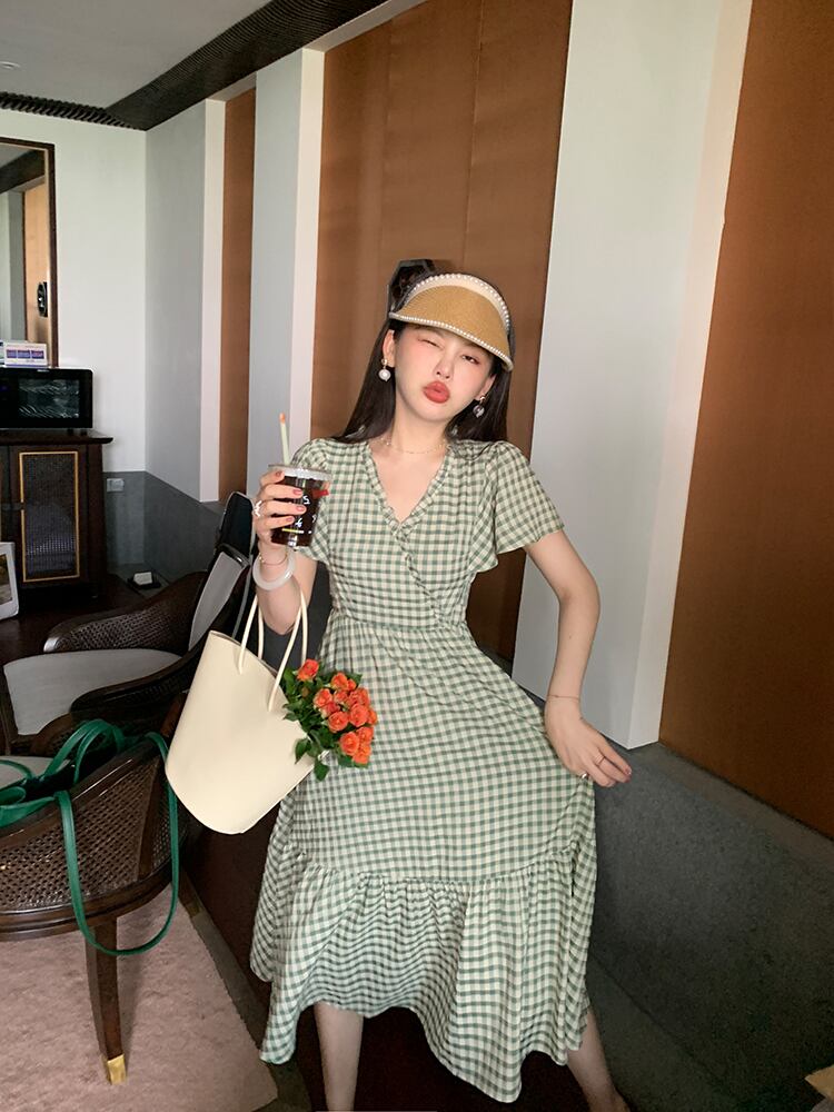 ミスシマリス[ヴィシー甘味料]フレンチモダンチェック柄ワンピースサマースモールセンス missi38016900614