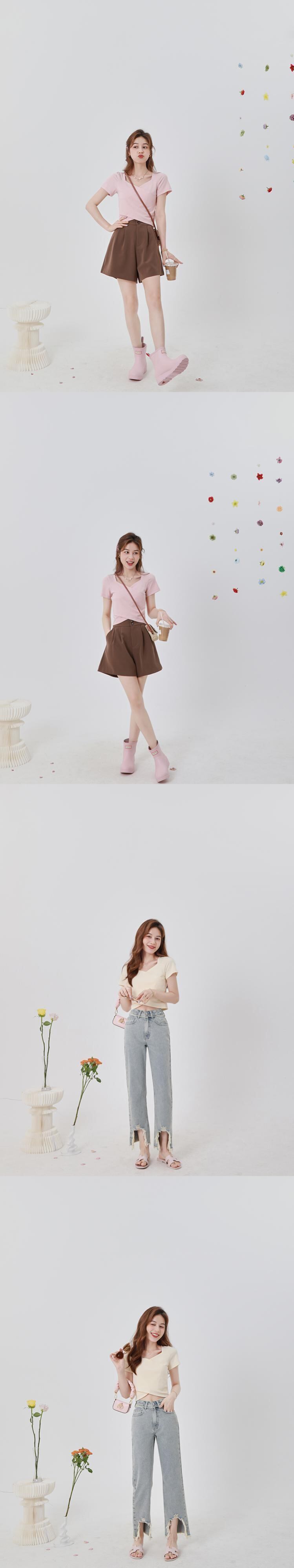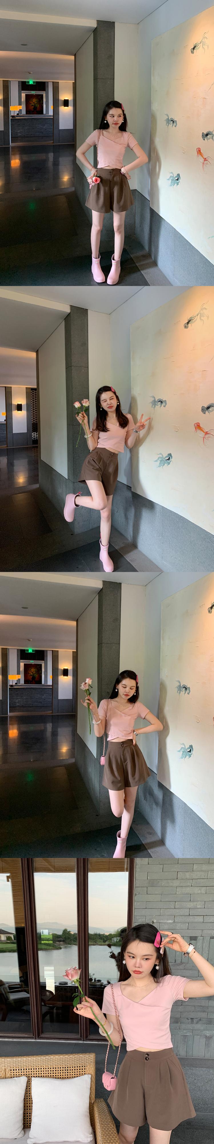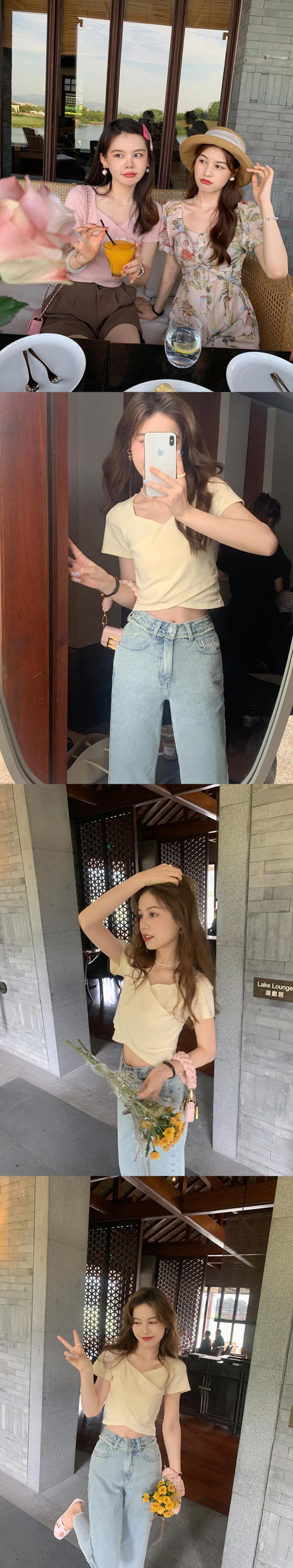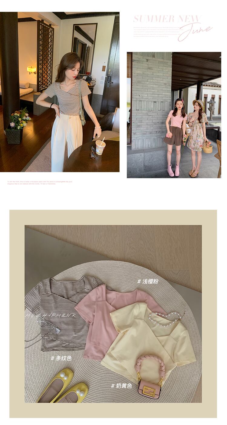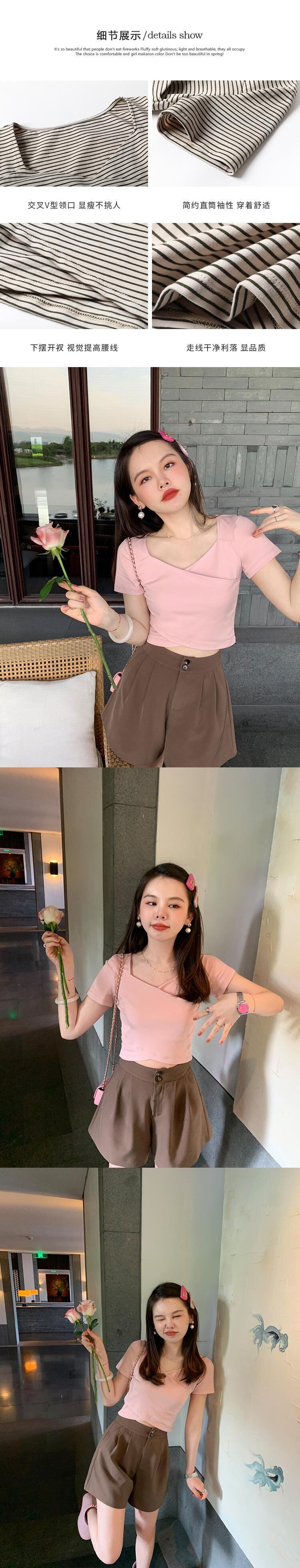 ミスシマリス[夏のガールフレンドTシャツ]甘くてスパイシーなスモールトップレディースサマー半袖Vネックスプリットスリム missi43684200799