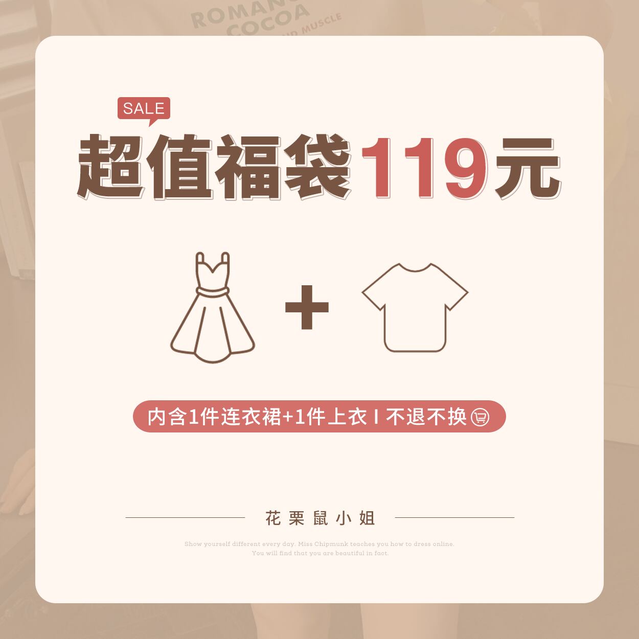 超お得なラッキーバッグ119元、ドレス1枚+トップ1枚、返金不可、交換不可 missi47923473660