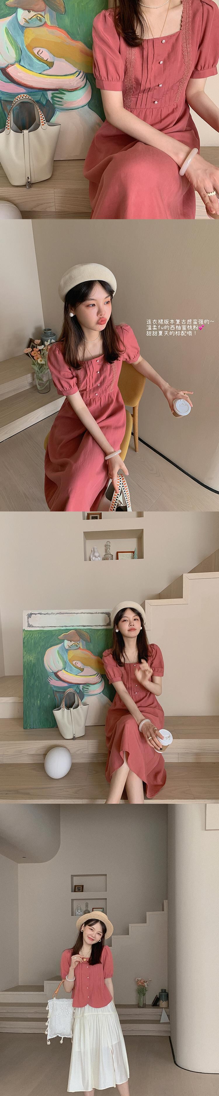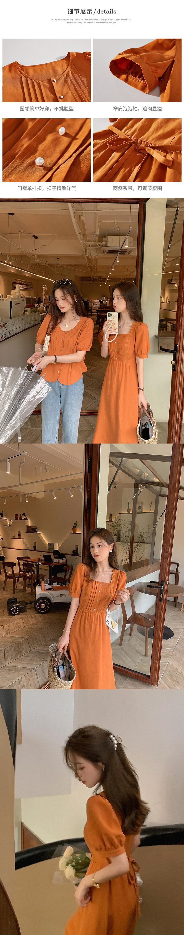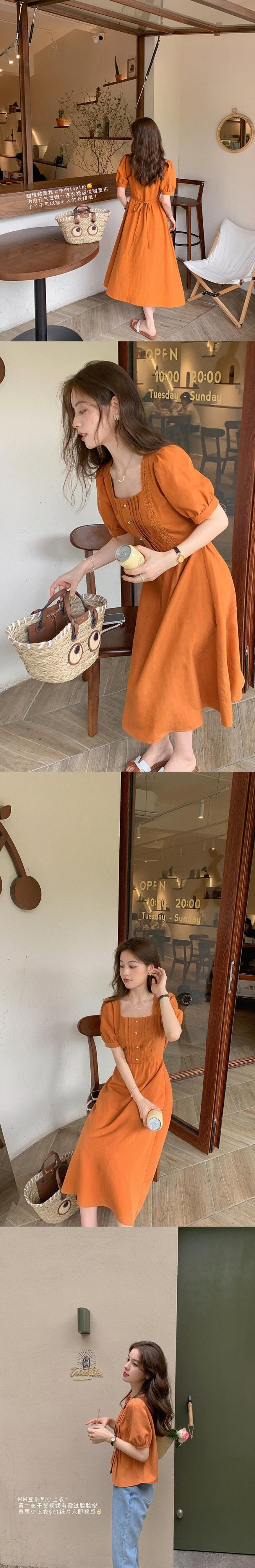 ミス シマリス [MM ビーン] フレンチ レトロ スクエア ネック ハイ ウエスト スリム ドレス女性夏気質ロング スカート missi42579079134