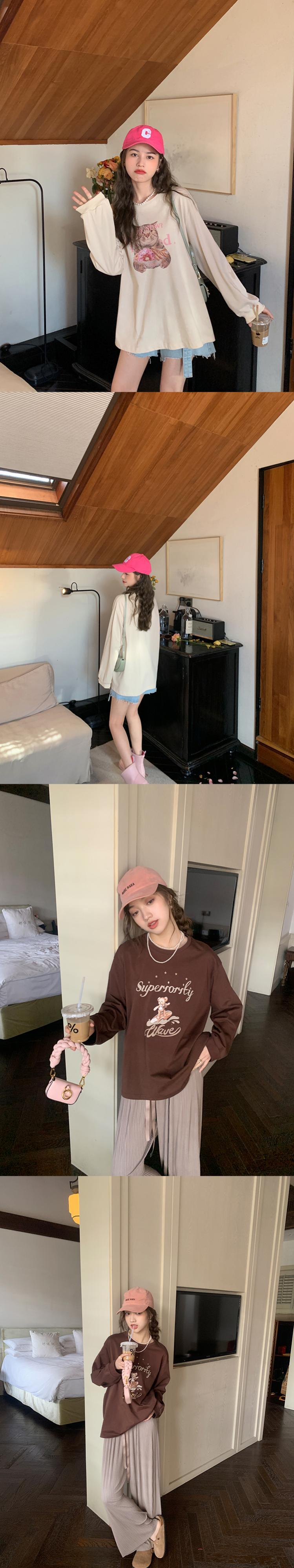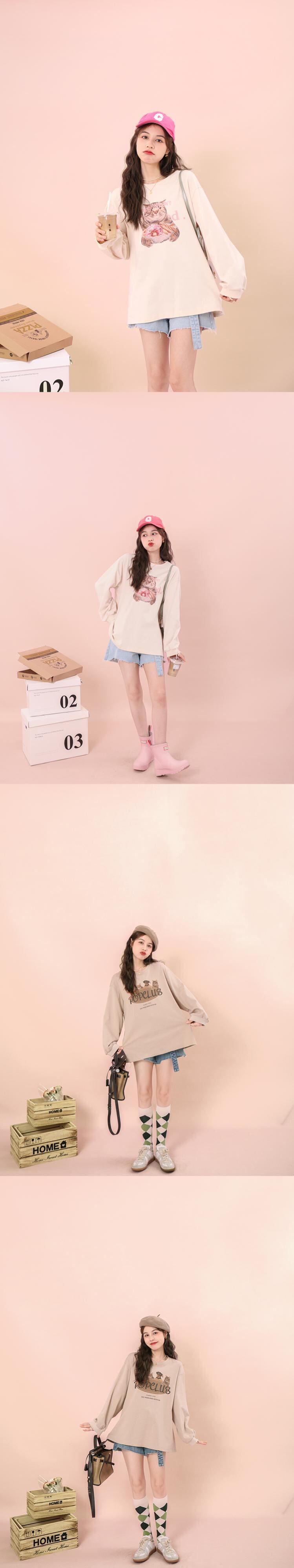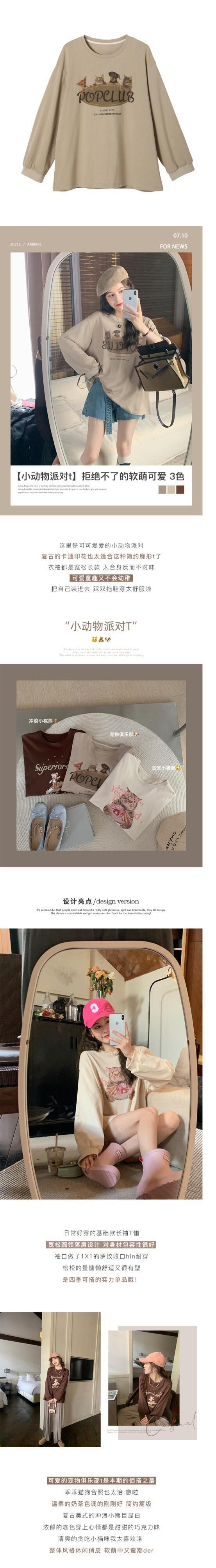 ミスシマリス【小動物パーティーT】ラウンドネックショルダー長袖プリントTシャツ レディース 夏 ゆったり 薄手 トップス missi2155285450