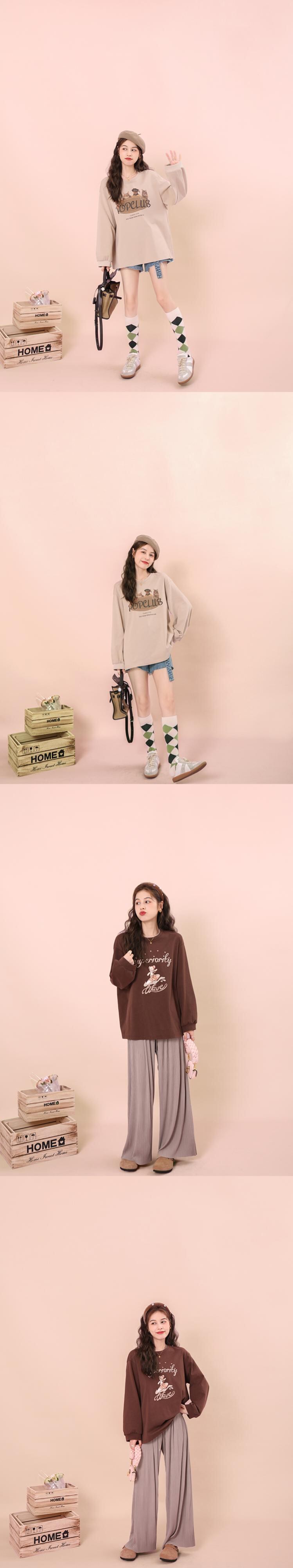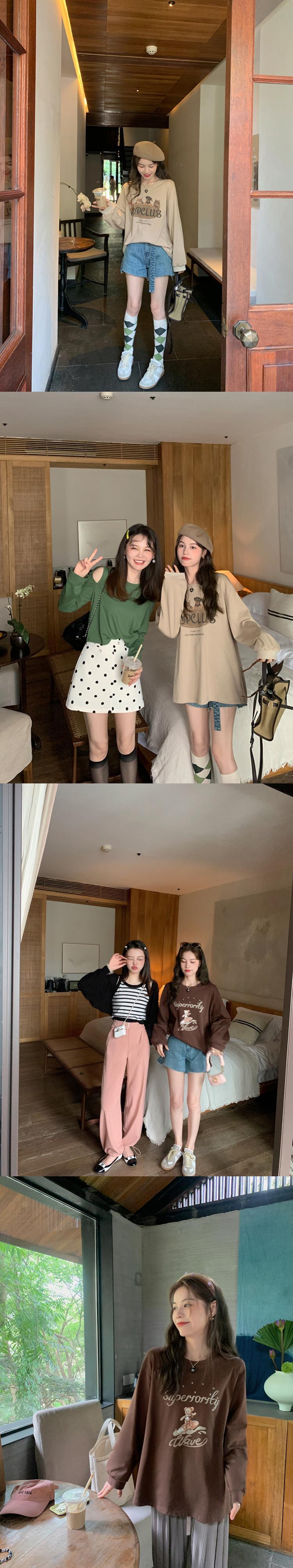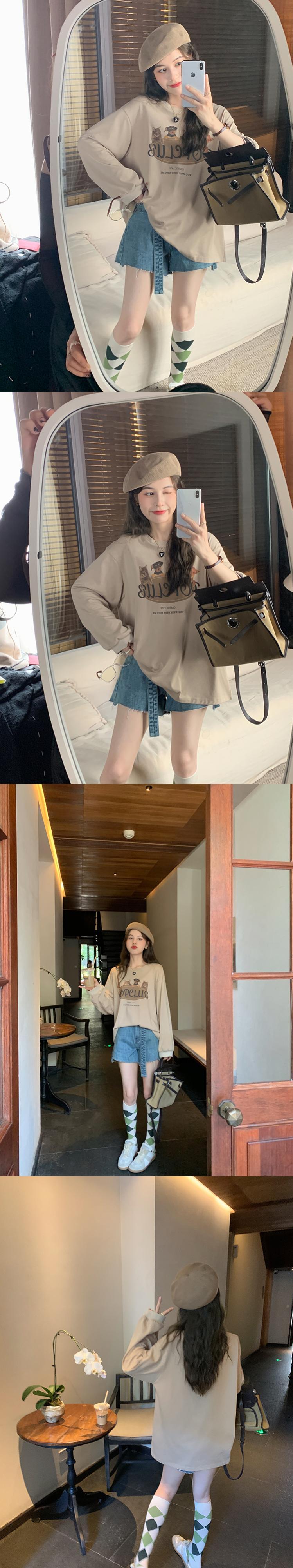 ミスシマリス【小動物パーティーT】ラウンドネックショルダー長袖プリントTシャツ レディース 夏 ゆったり 薄手 トップス missi2155285450