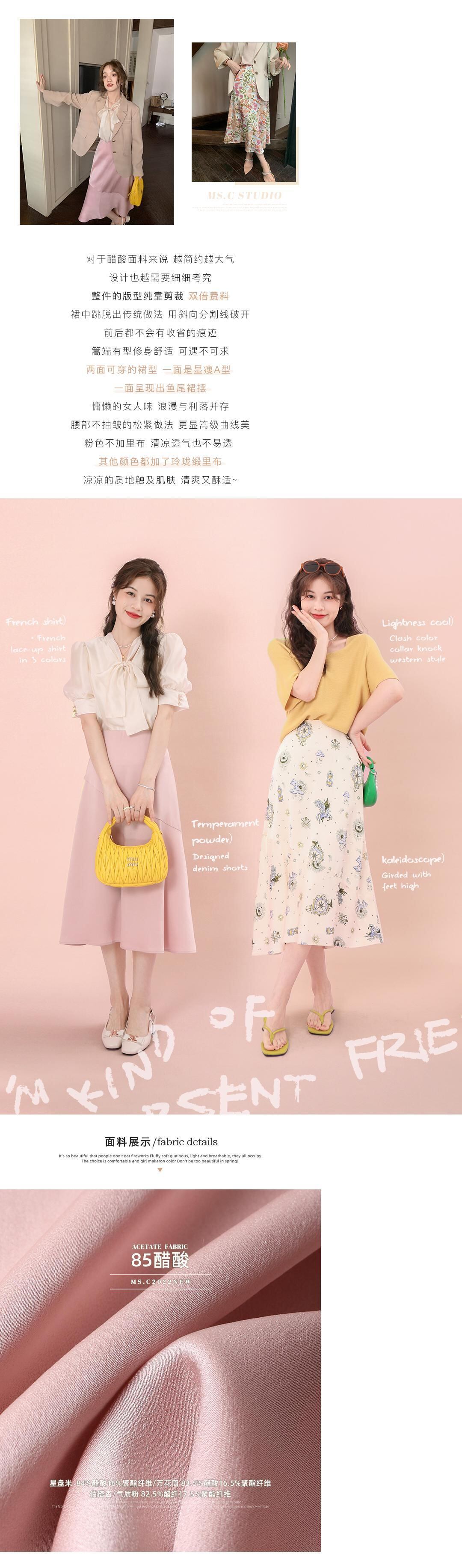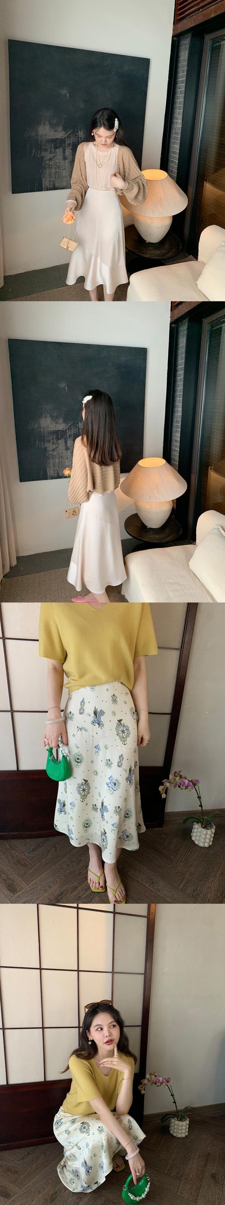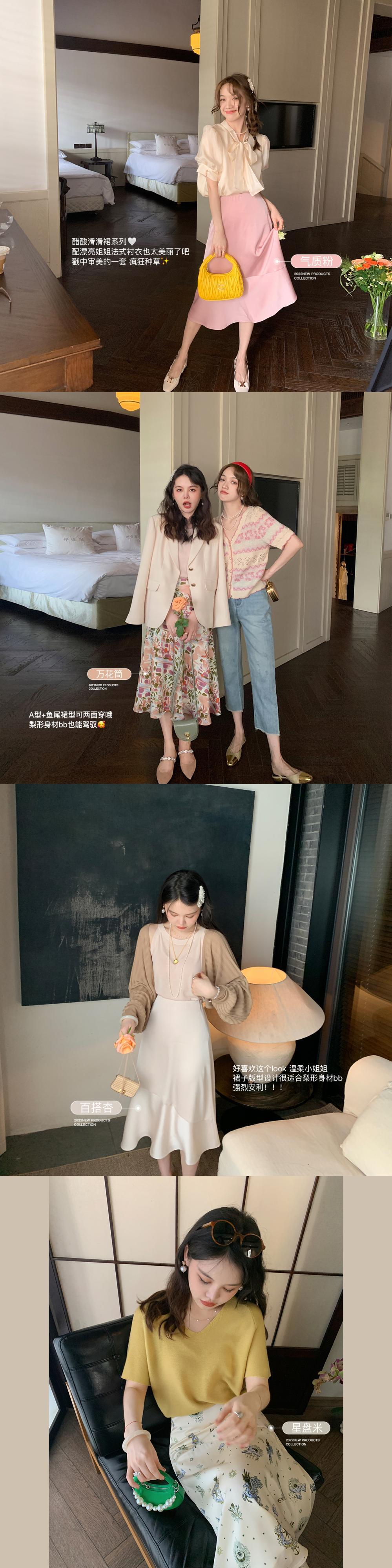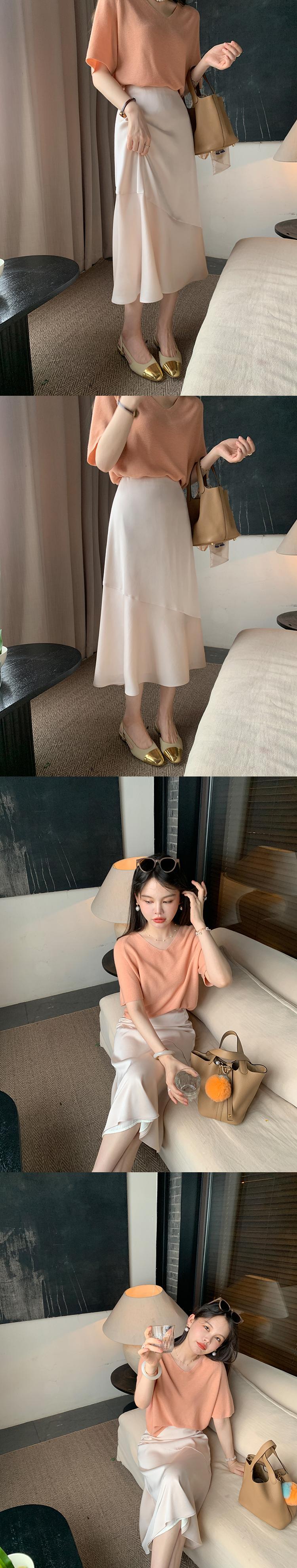 Miss Chipmunk [ブラックレーベル アセテート スカート] ウエスト フィッシュテール スカート 夏 小さめ Aライン ロング スカート missi14958979670