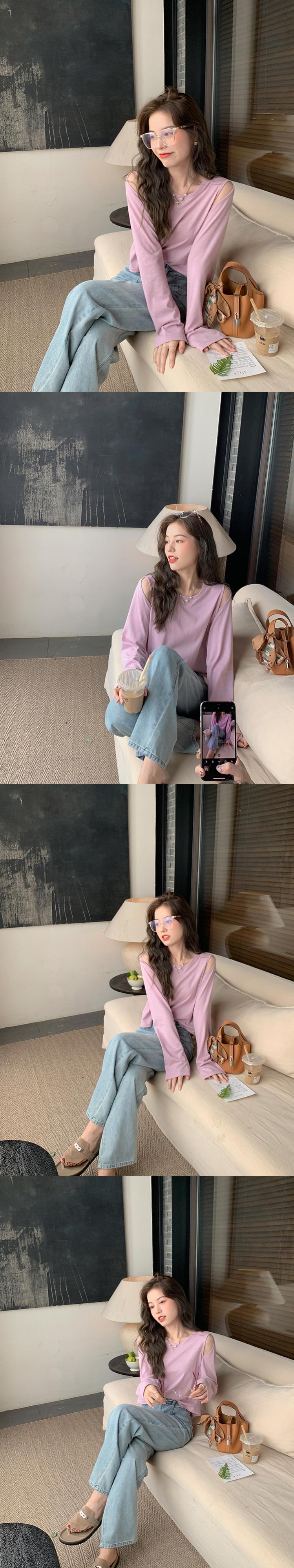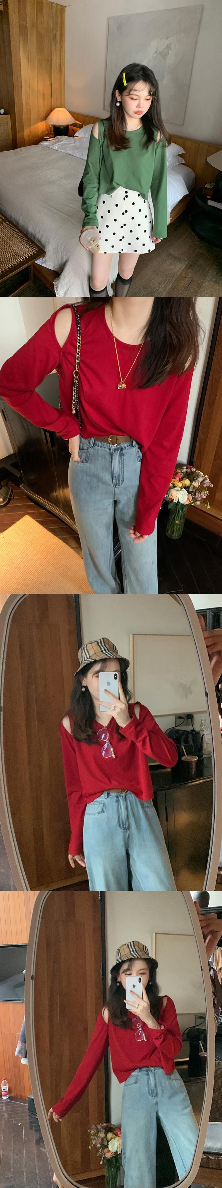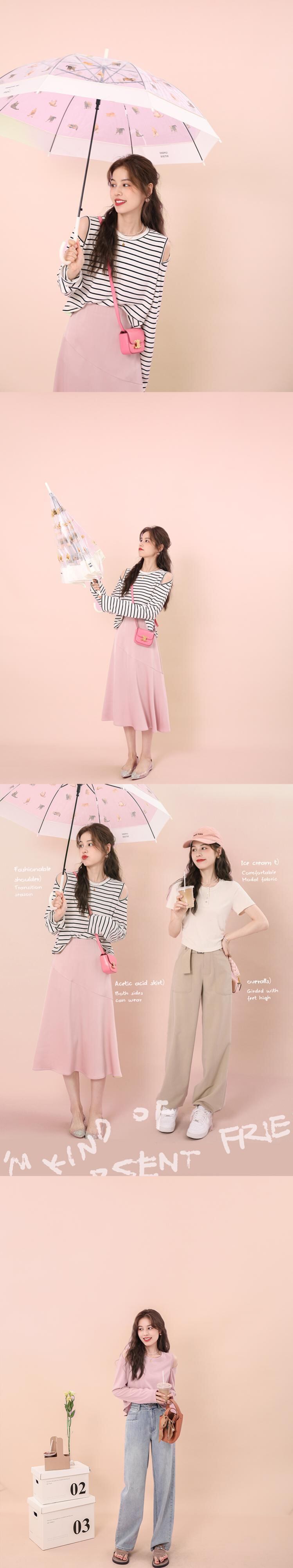 ミスシマリス[フルーツキャンディー Tシャツ] レイジー風 オフショルダー ラウンドネック 長袖 トップス レディース 夏 ゆったり 薄手 missi76242804089