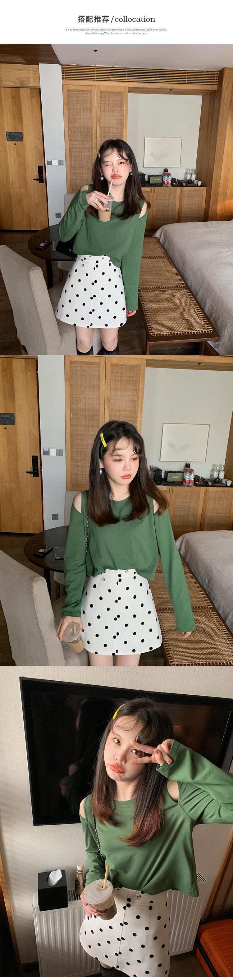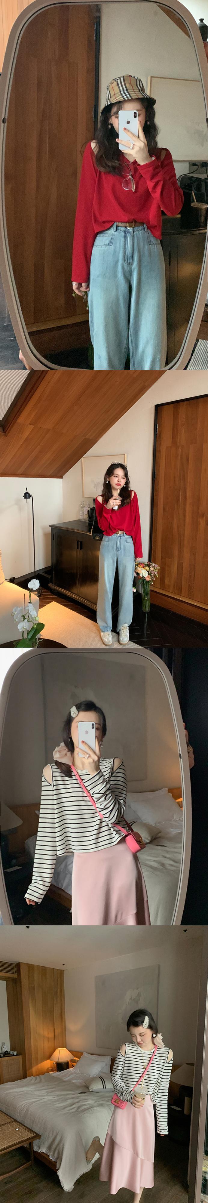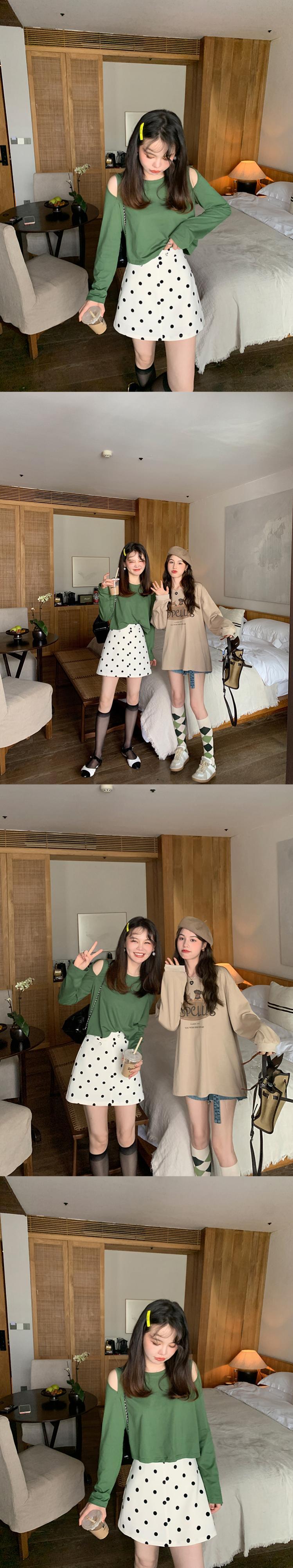 ミスシマリス[フルーツキャンディー Tシャツ] レイジー風 オフショルダー ラウンドネック 長袖 トップス レディース 夏 ゆったり 薄手 missi76242804089