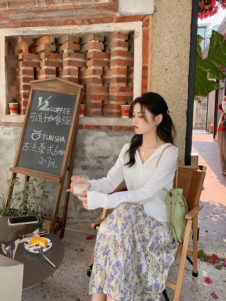 ミスシマリス福祉クリアランス【サンドアイス日焼け止めシャツ】白の着痩せカーディガン甘く爽やかなニット missi33418843225