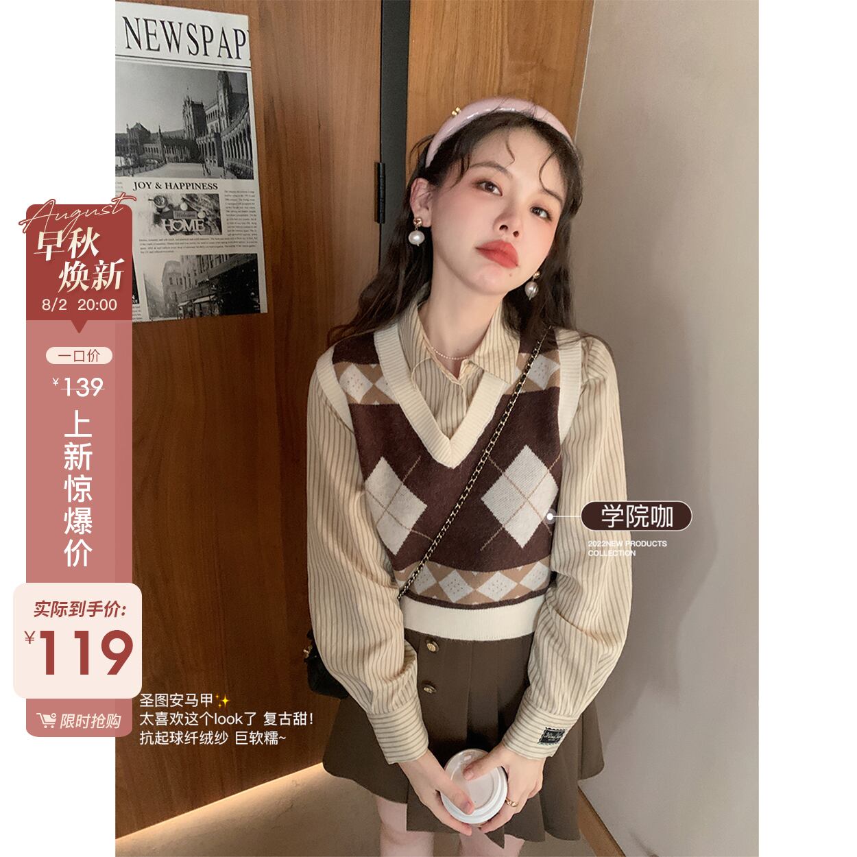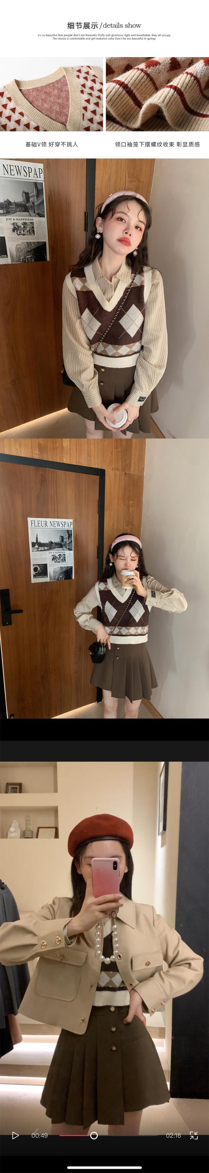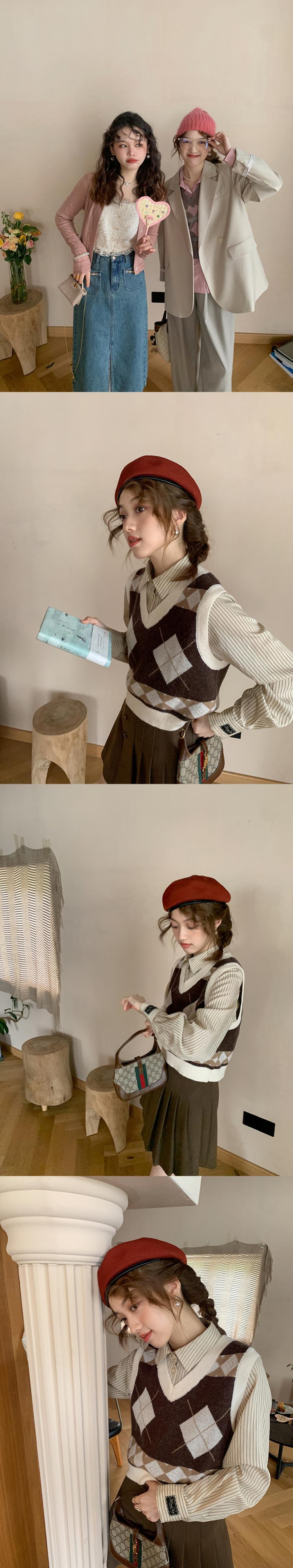 ミス シマリス [セント トゥアン ベスト] カレッジ風アンチ ピリング ダイヤモンド ニット ベスト女性の秋の v ネック トップ missi54298087582
