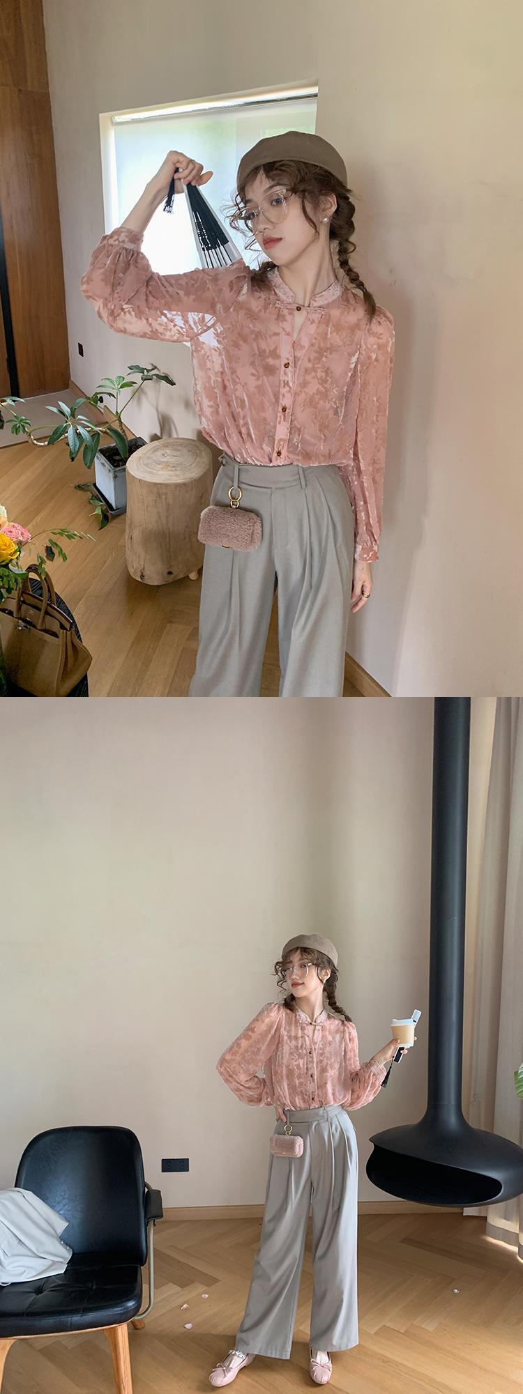 ミス シマリス [ナンヤンル チン グオフェン トップ] ベルベット バーニング フラワー プライベート 長袖 シャツ レディース 初秋 missi28671331176