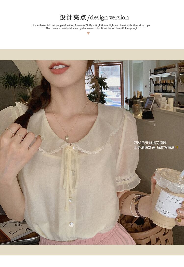 ミスシマリス福利厚生【リトルミルクケーキ】 トップス レディース 夏 薄手 半袖 絶妙 キレイめ 小さめシャツ missi74770831310
