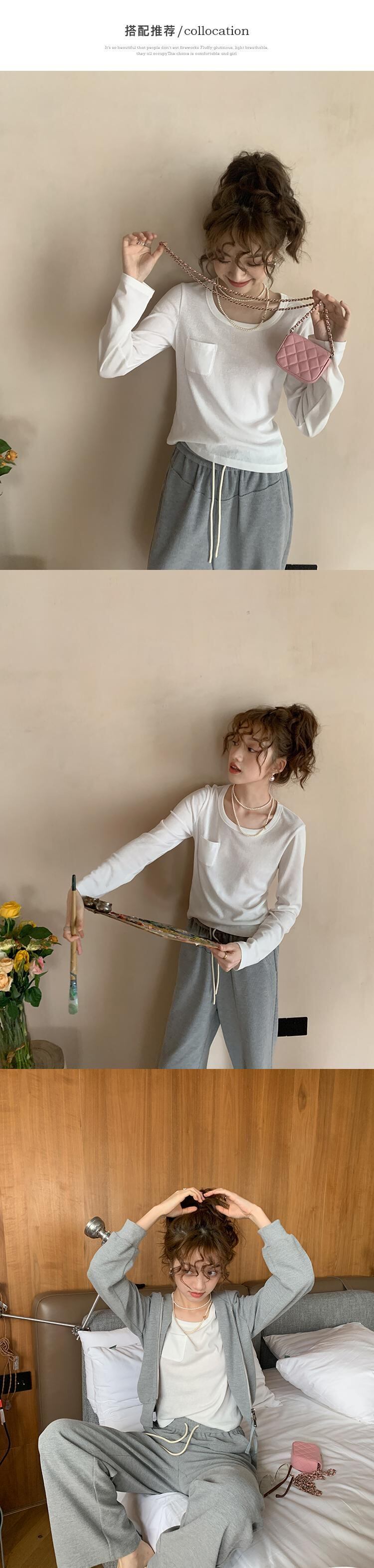 ミスシマリス【ふんわりマスクTシャツ】小ポケット 薄手 薄手 長袖 トップス レディース 初秋 Uネック 薄手 白 missi51227425055