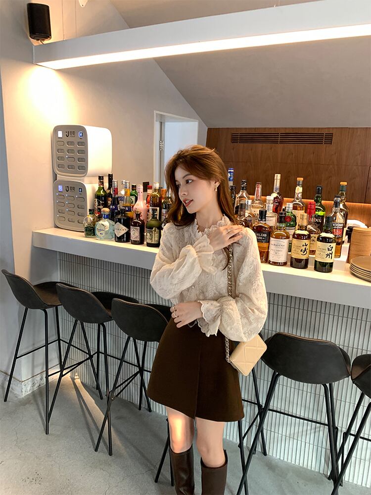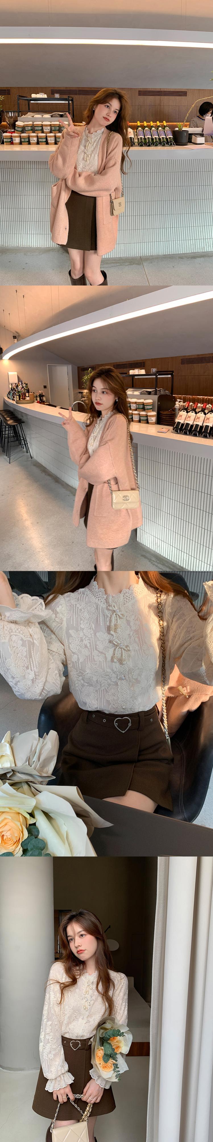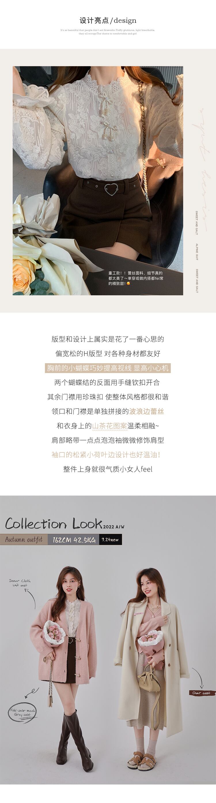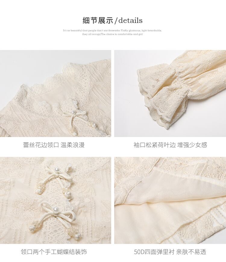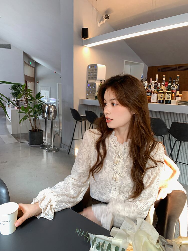 Miss Chipmunk [ミッドトーン フリージア] ハンドメイド ボウレース 長袖 シャツ レディース 秋 パフスリーブ トップス missi20097188538