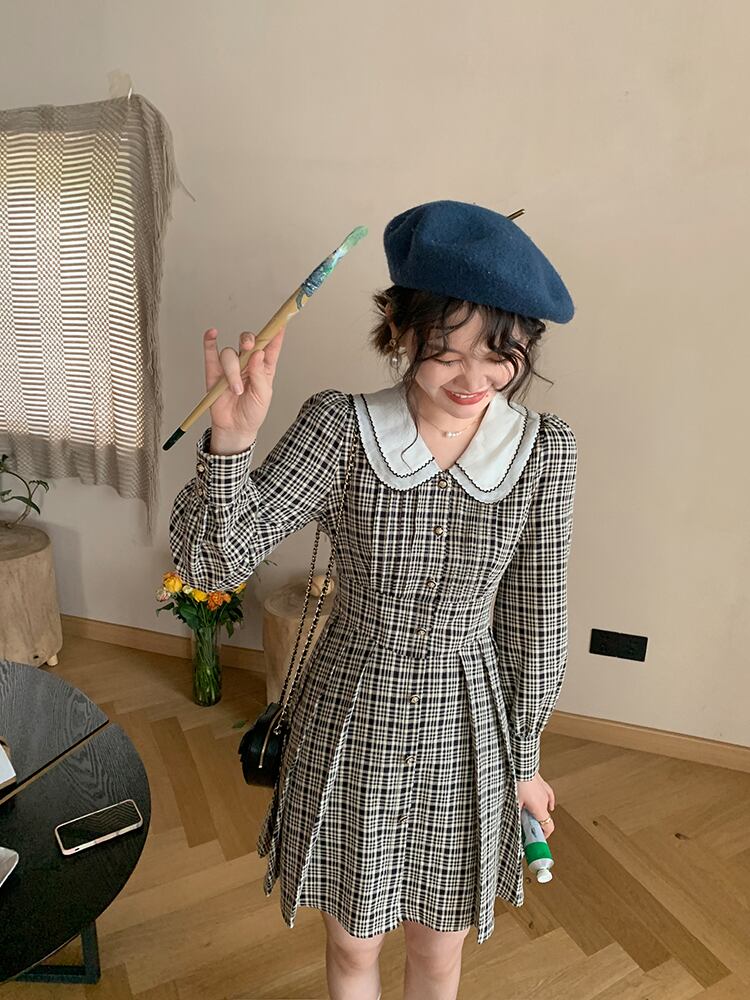 Miss Chipmunk [miuシリーズ スコットランドの恋人] レトロな甘い重工業の格子縞のドレスの女性の夏の小さな missi53707300854