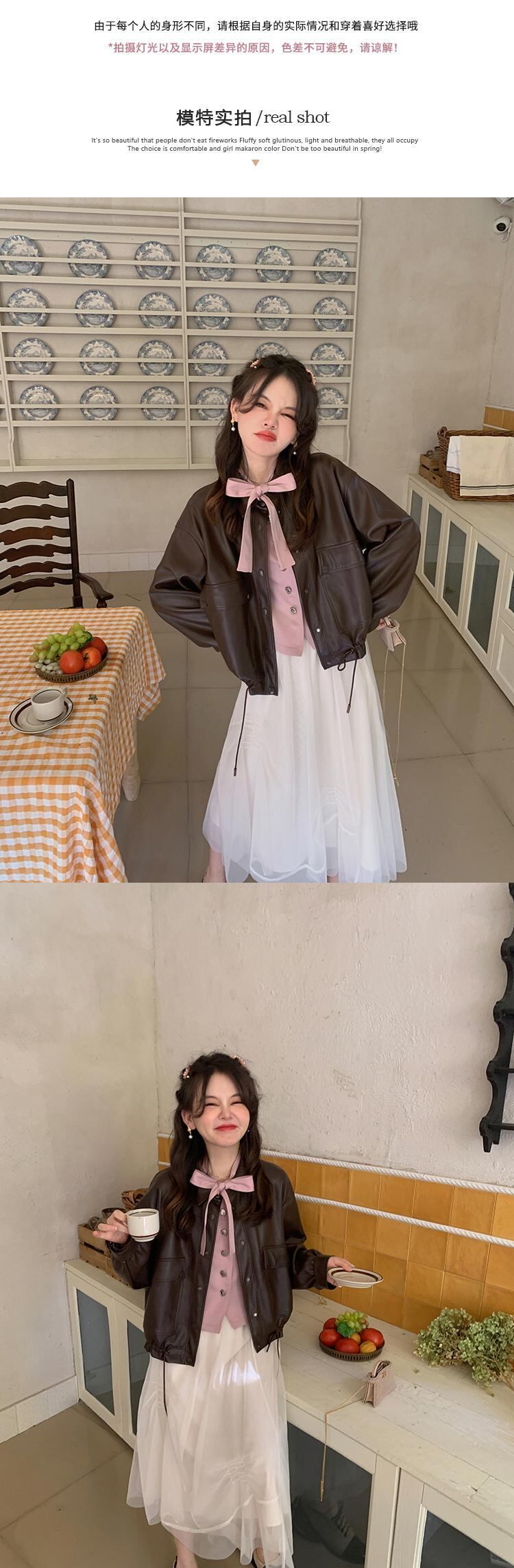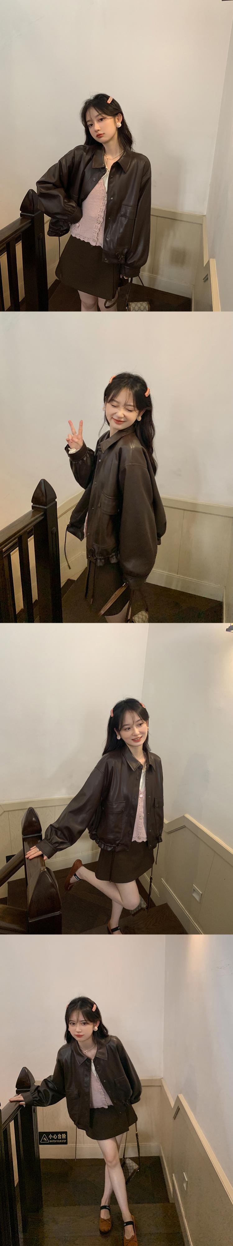 Miss Chipmunk [シドニー スモール レザー ジャケット] DIN リング バオ レザー ジャケット オートバイ ショート ジャケット 春秋 S missi90860769957