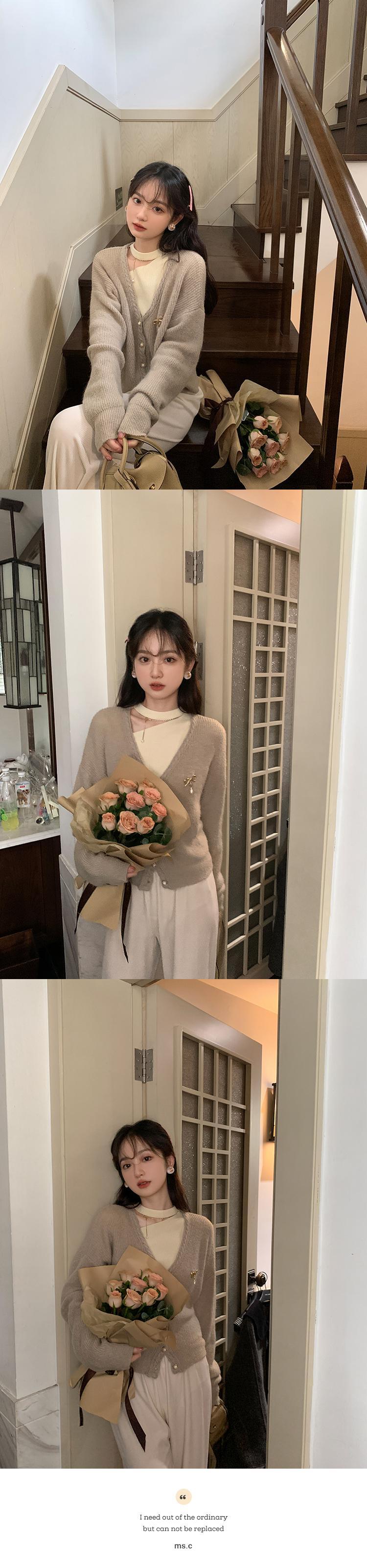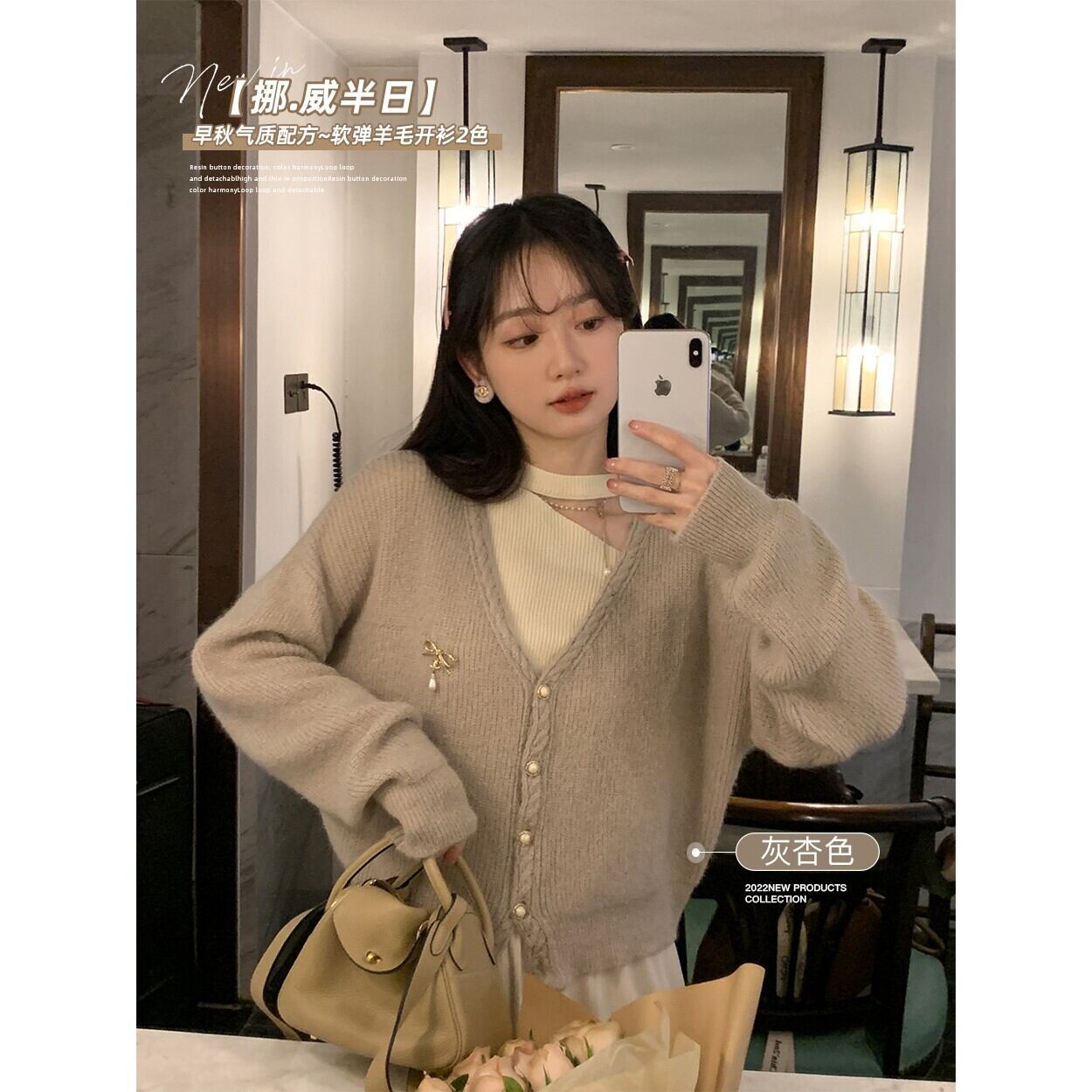 ミス シマリス [ノルウェーの半日] 怠惰な V ネック ニット カーディガン セーター女性の秋の気質スリム トップ missi15451190799