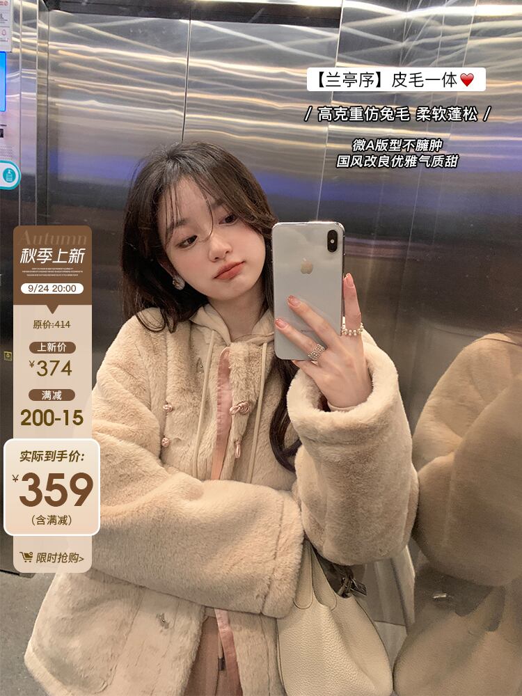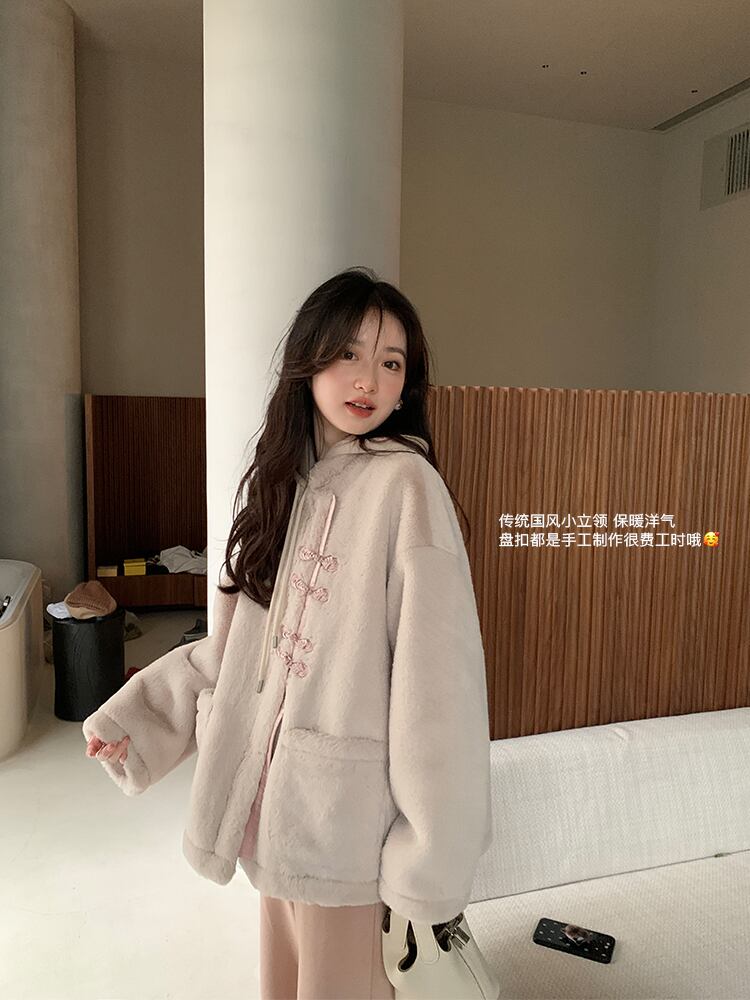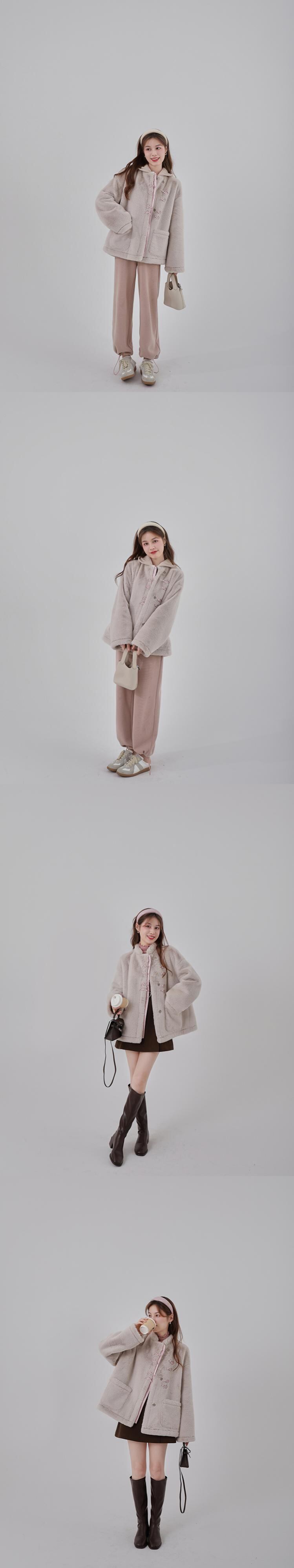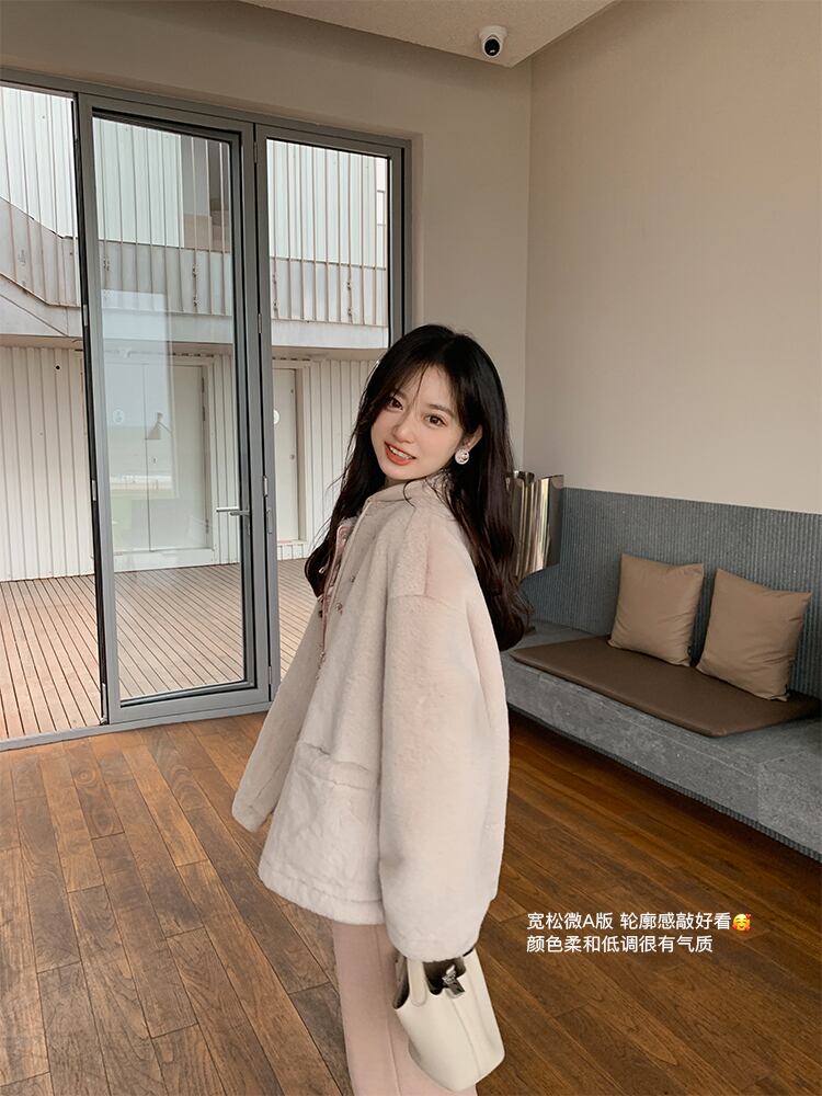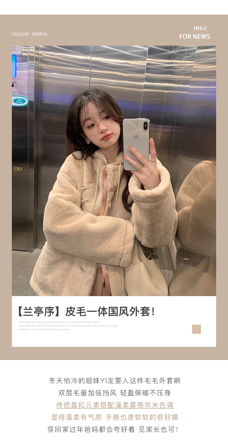 ミスシマリス【蘭館序文】ファーワンピース民族風プレートバックルショートスタンドカラーコート女性秋冬小物 missi25161472577