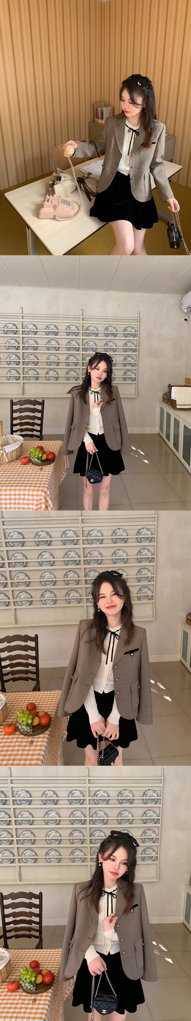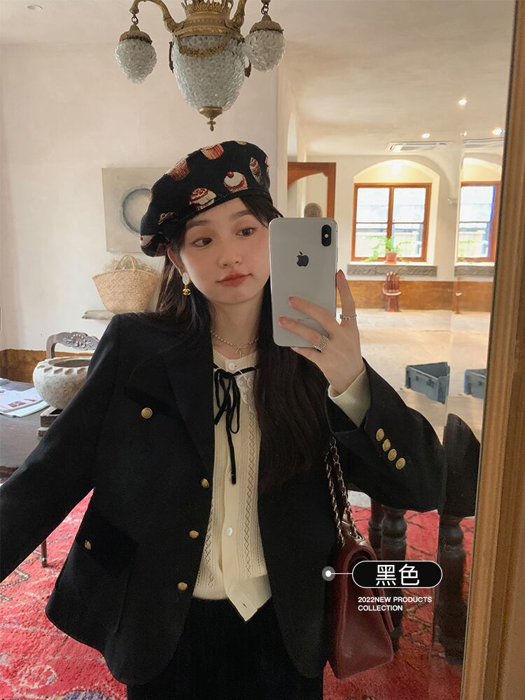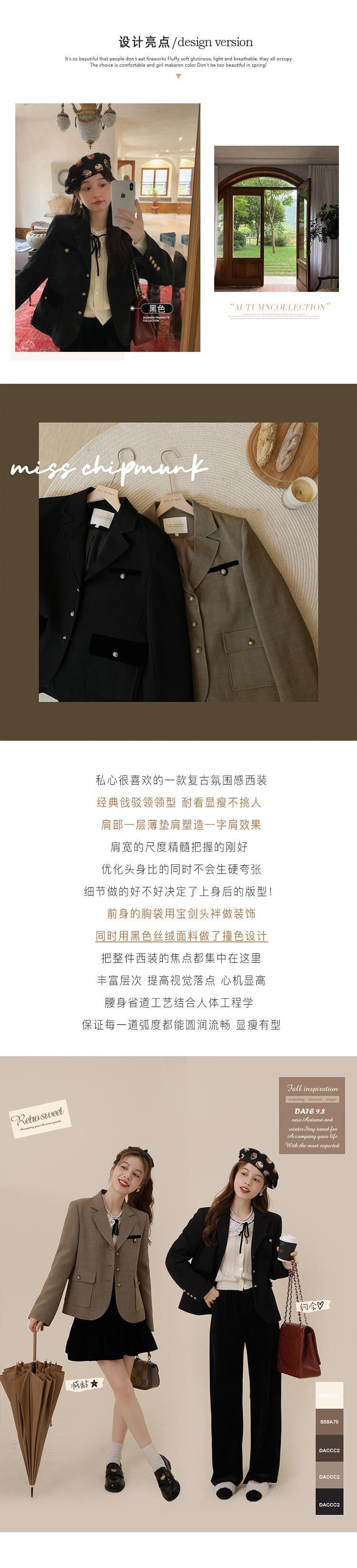 ミスシマリス【モンペルスーツ】 レトロ コントラストカラー ベルベットスーツ ショート ジャケット 女性 秋 小さめ カジュアル missi41254789514