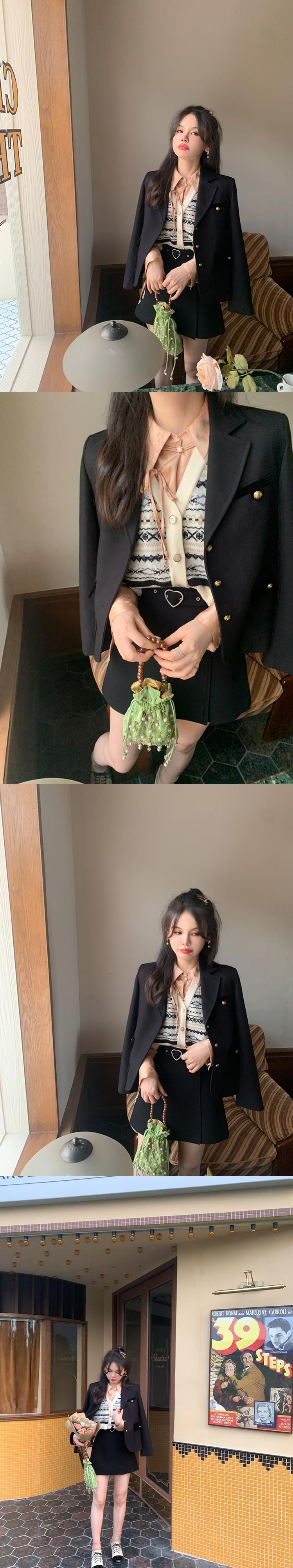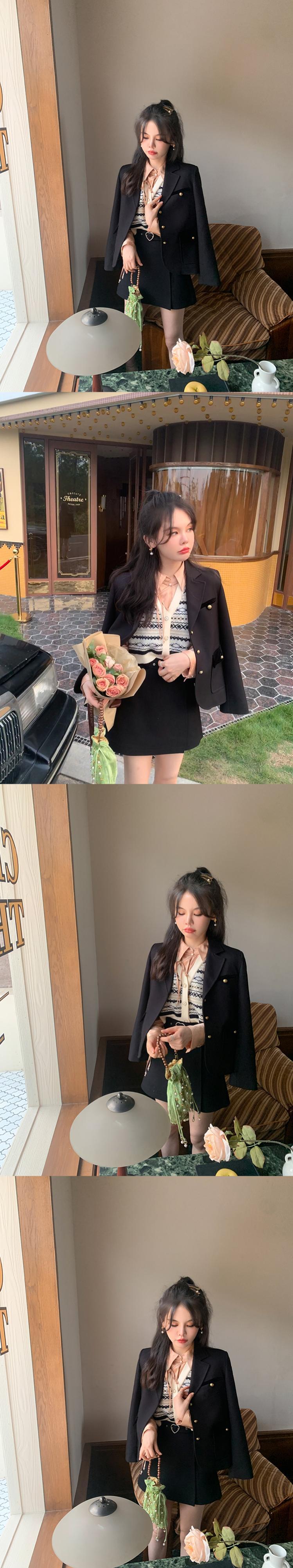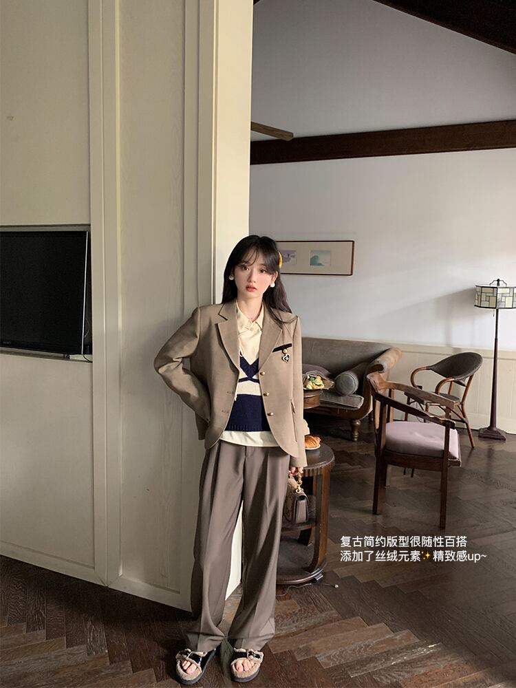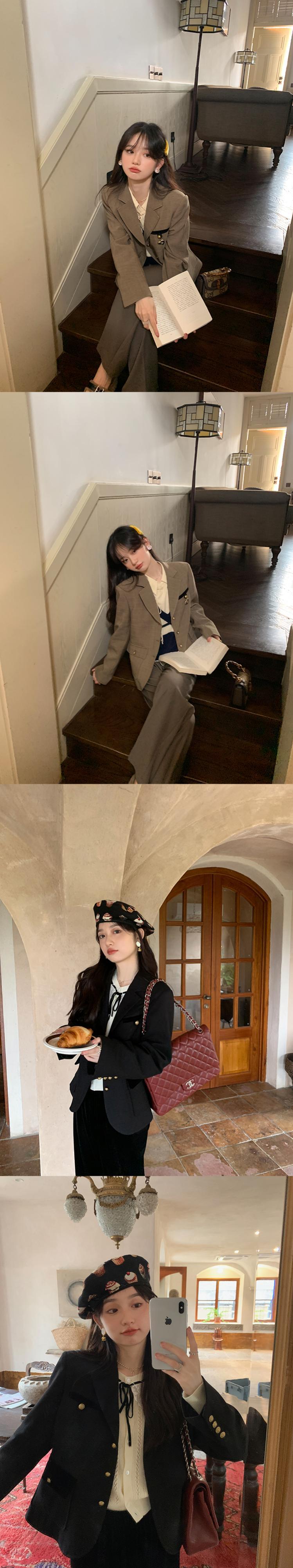 ミスシマリス【モンペルスーツ】 レトロ コントラストカラー ベルベットスーツ ショート ジャケット 女性 秋 小さめ カジュアル missi41254789514