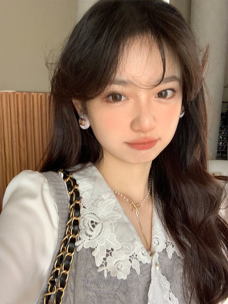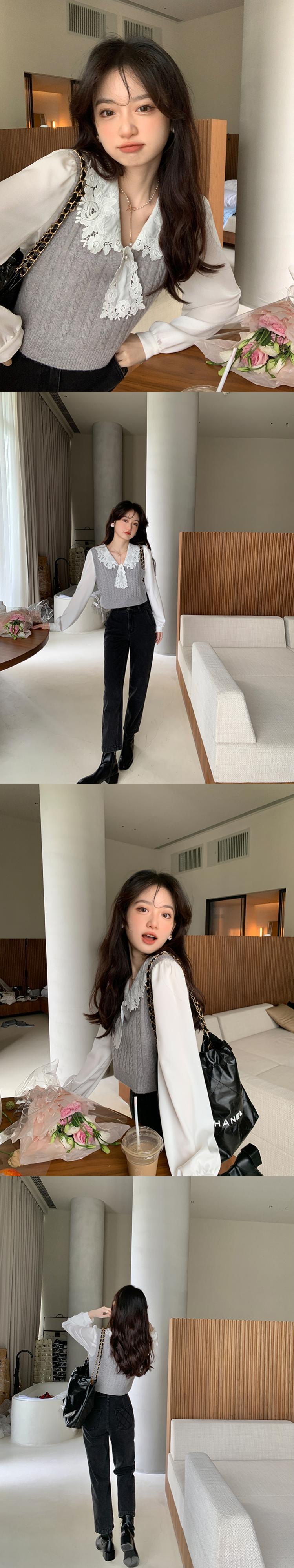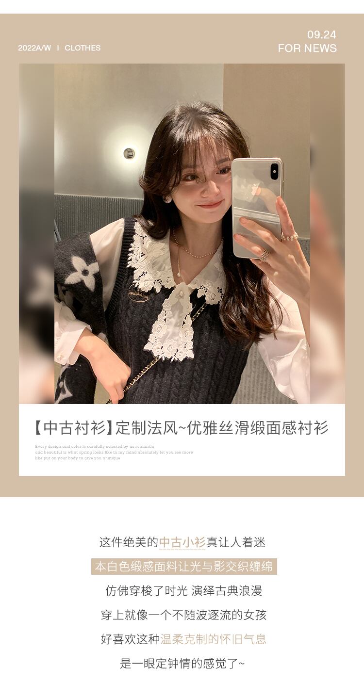 Miss Chipmunk 【二次シャツ】 重工業 レース 刺繍衿 サテンシャツ レディース 秋 フレンチ トップス missi50254603815
