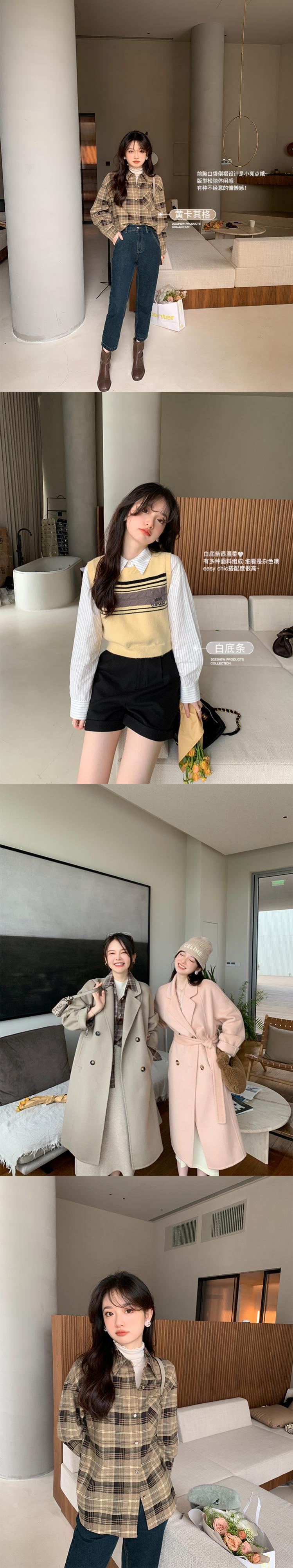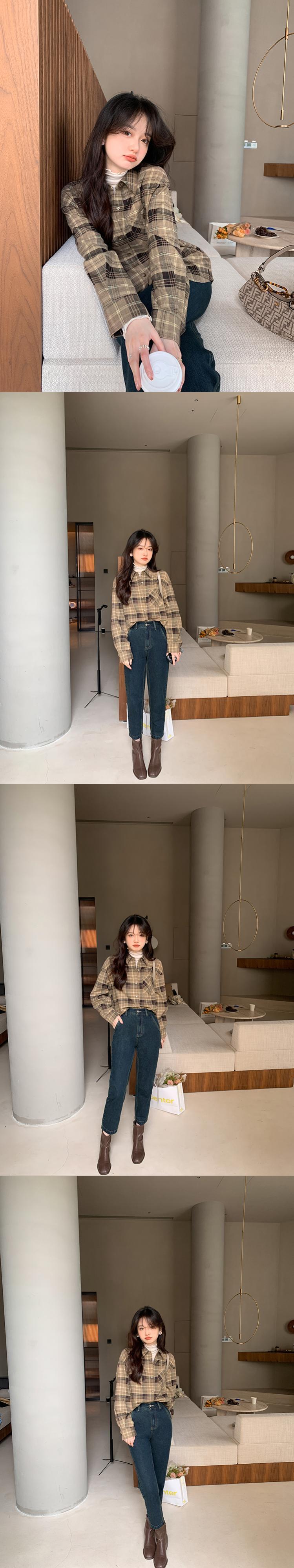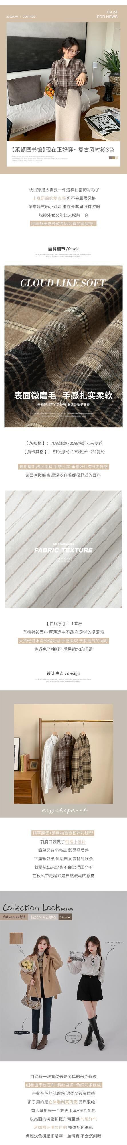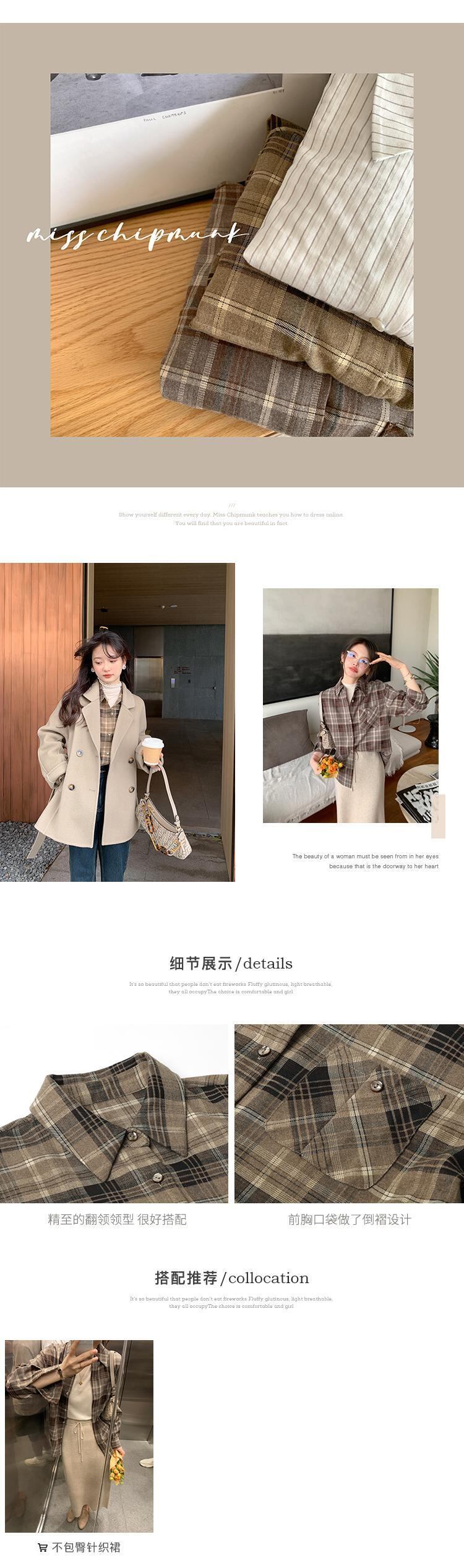 Miss Chipmunk [ライデン図書館] レトロチェック柄ストライプ長袖シャツレディース秋スリムコミュータートップス missi12156607049