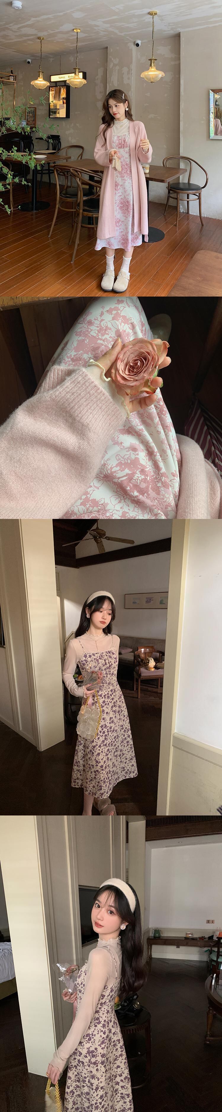 Miss Chipmunk [Ilm Riverside] レトロ花柄サスペンダースカート ボトムス シャツスーツ 女性 初秋 ツーピース missi13415060792