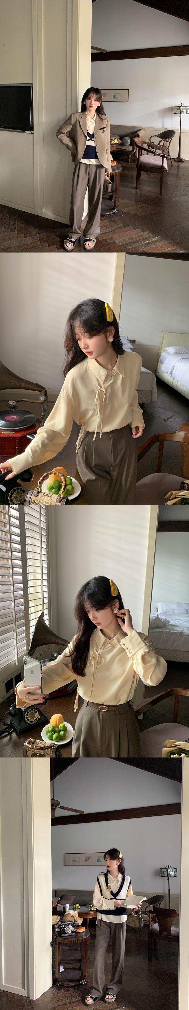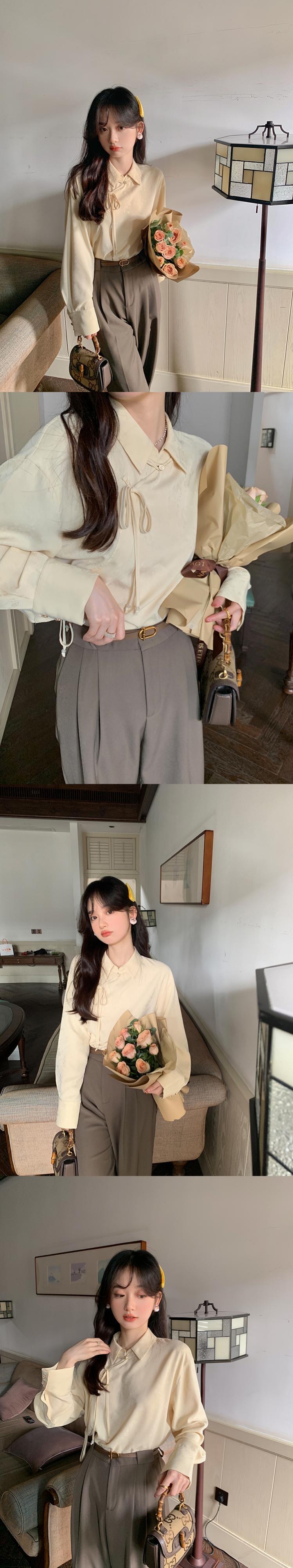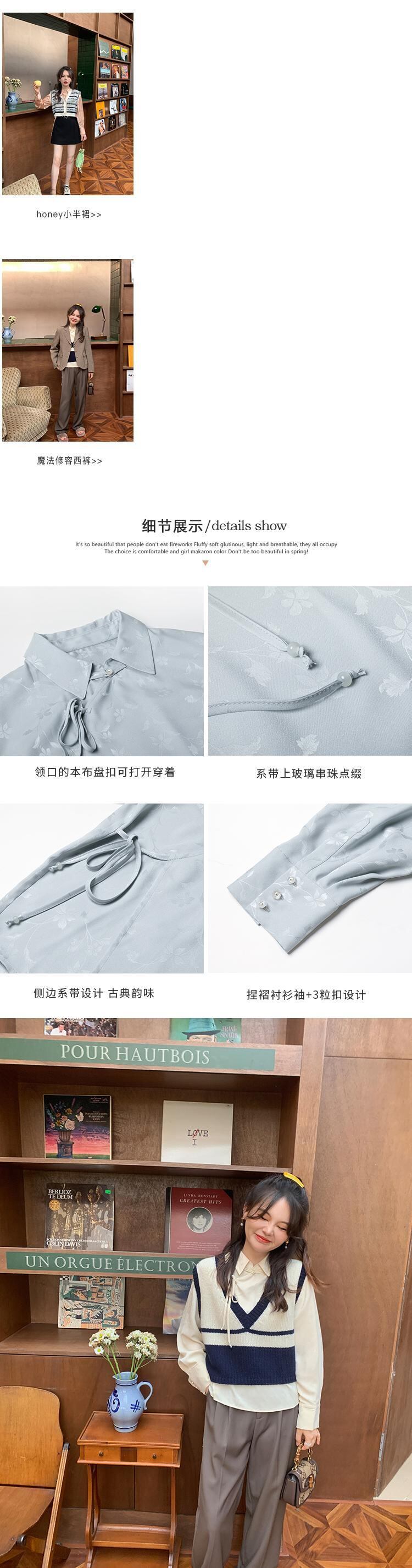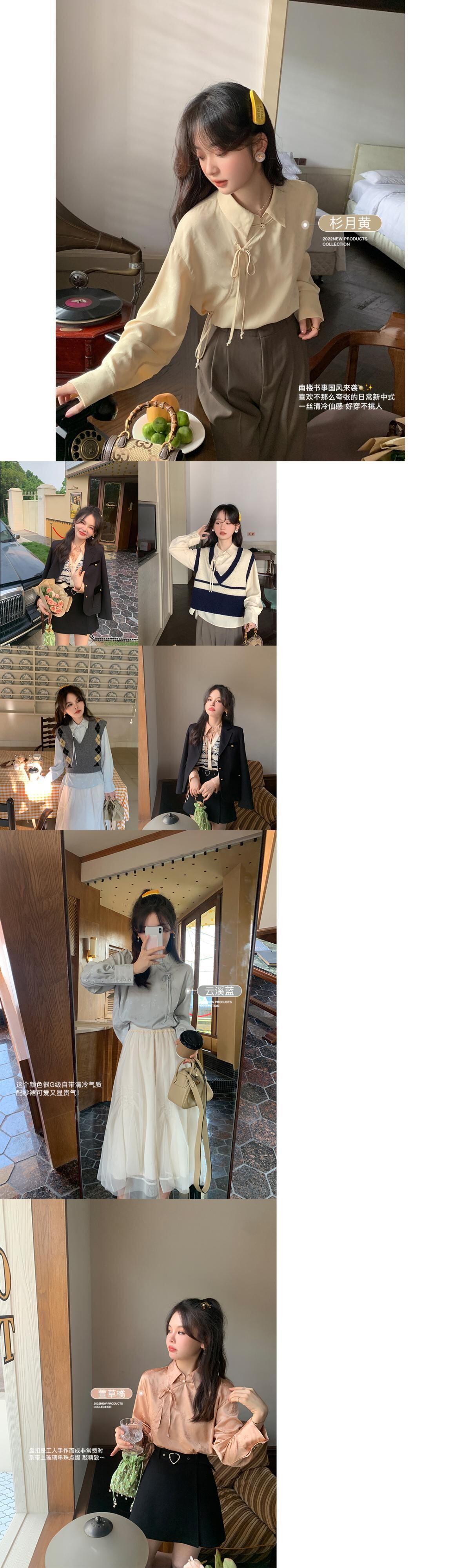 ミス シマリス [南館図書] チャイナ風 ボタン付き 濃色柄 長袖 シャツ レディース 秋 個性 トップス missi45717058403