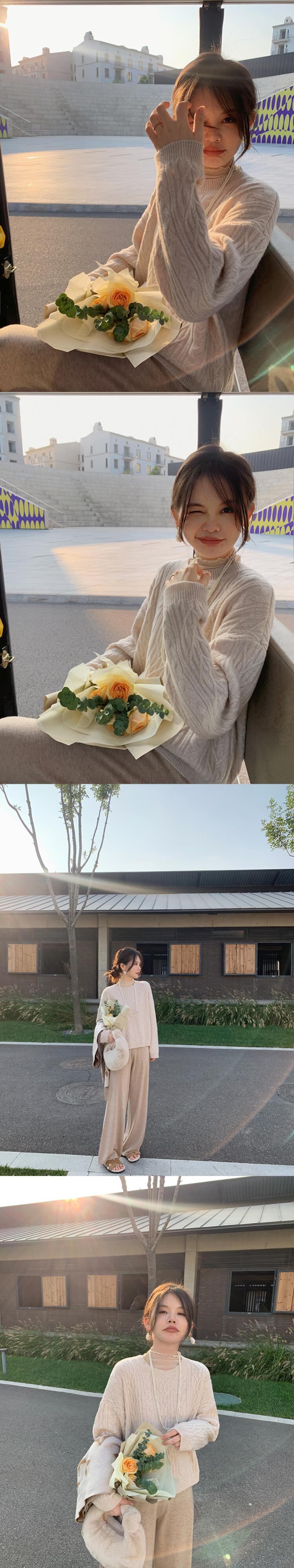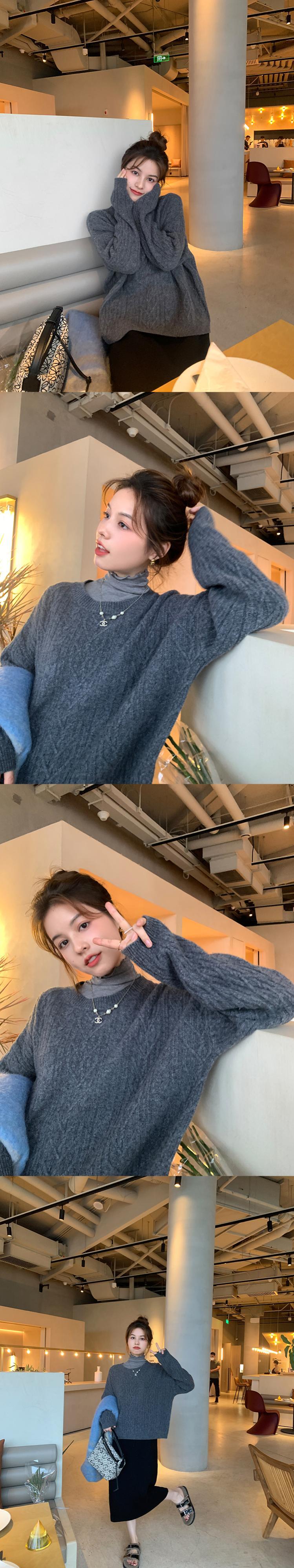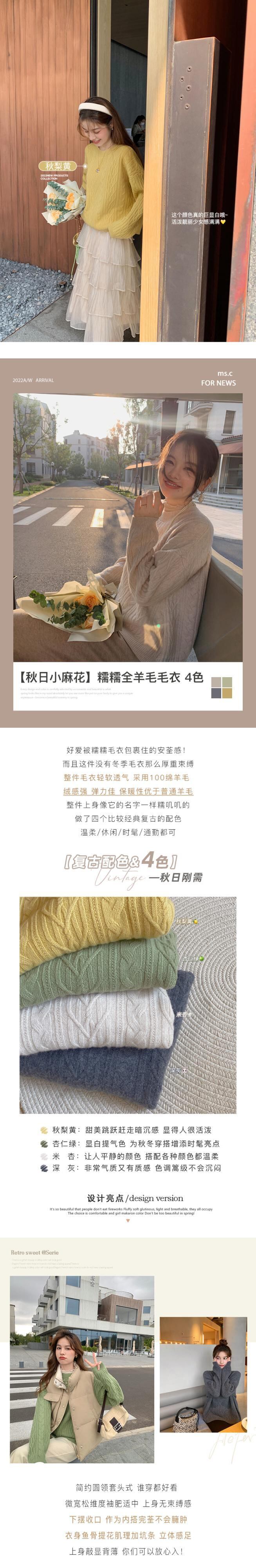ミスシマリス[秋小ひねり] 綿100 ウールセーター レディース 秋 レイジーウィンド ケーブルニット トップス missi17891735058