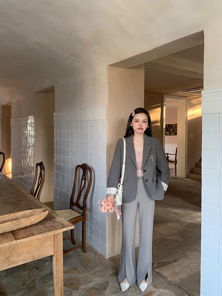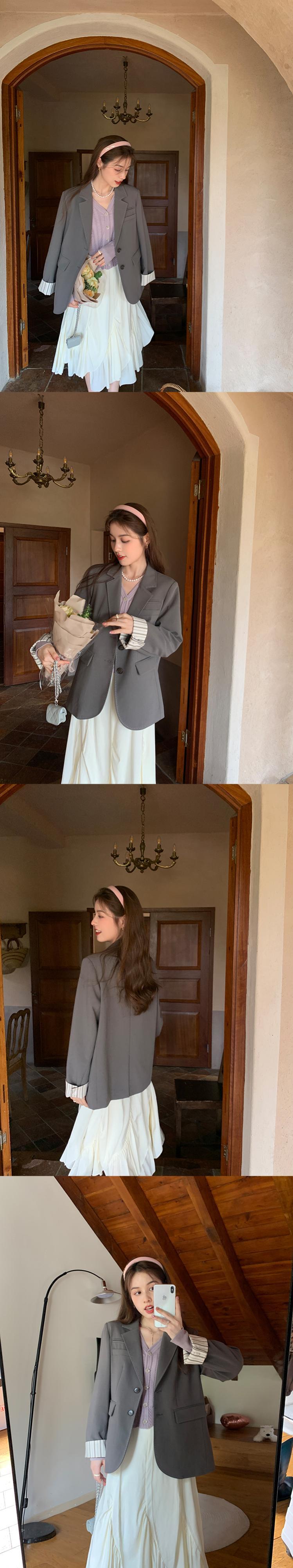 ミス シマリス [フィラデルフィア クロニクル] コントラスト カラー ストライプ カフス スーツ ジャケット レディース 初秋 気質 ルーズ トップ missi63856944819