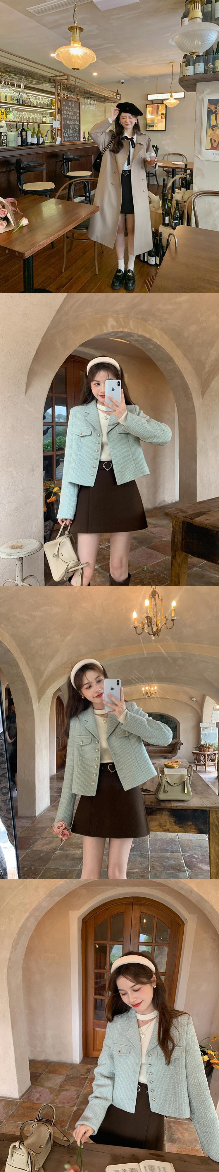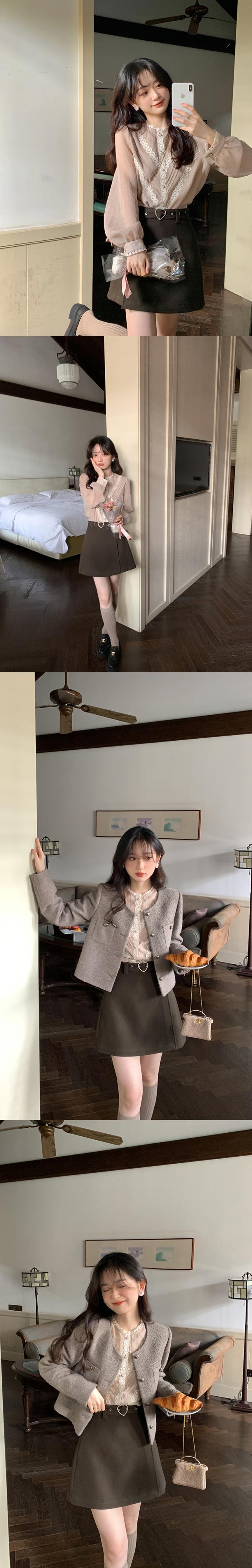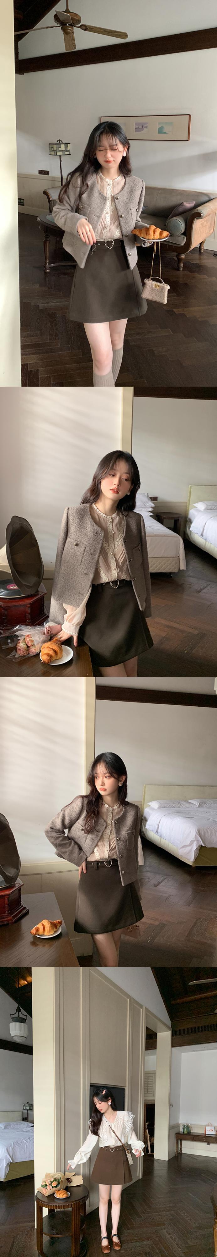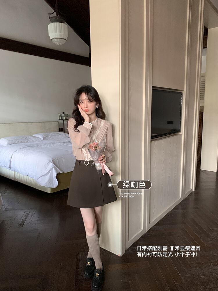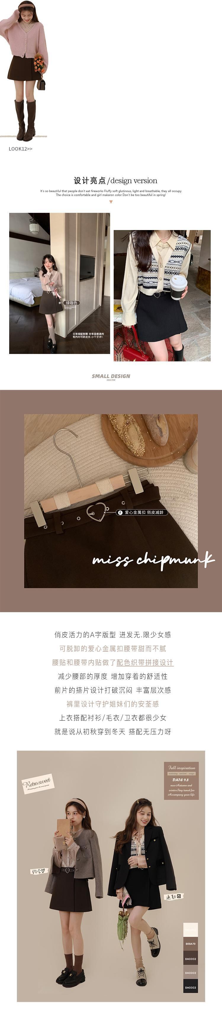 ミス シマリス [蜂蜜小さなスカート] 愛ボタン a ライン ショート スカート女性秋の小さなハイ ウエスト スカート missi4868233818