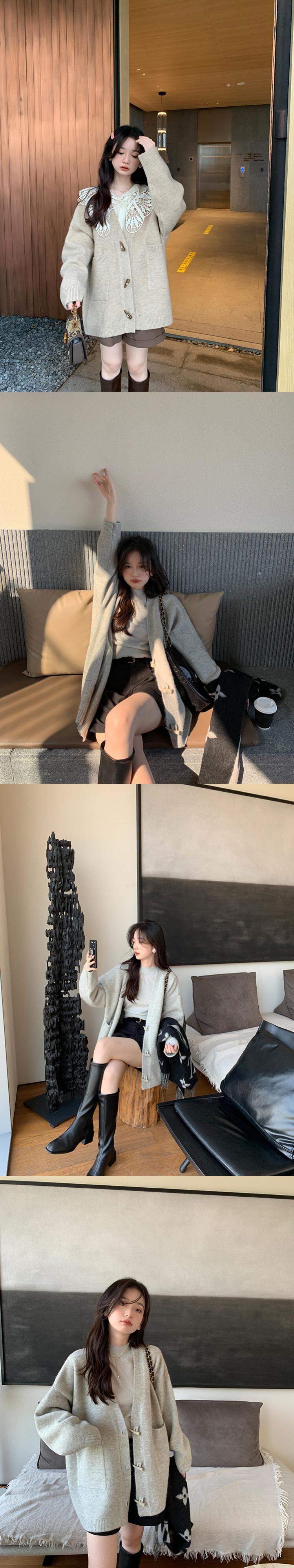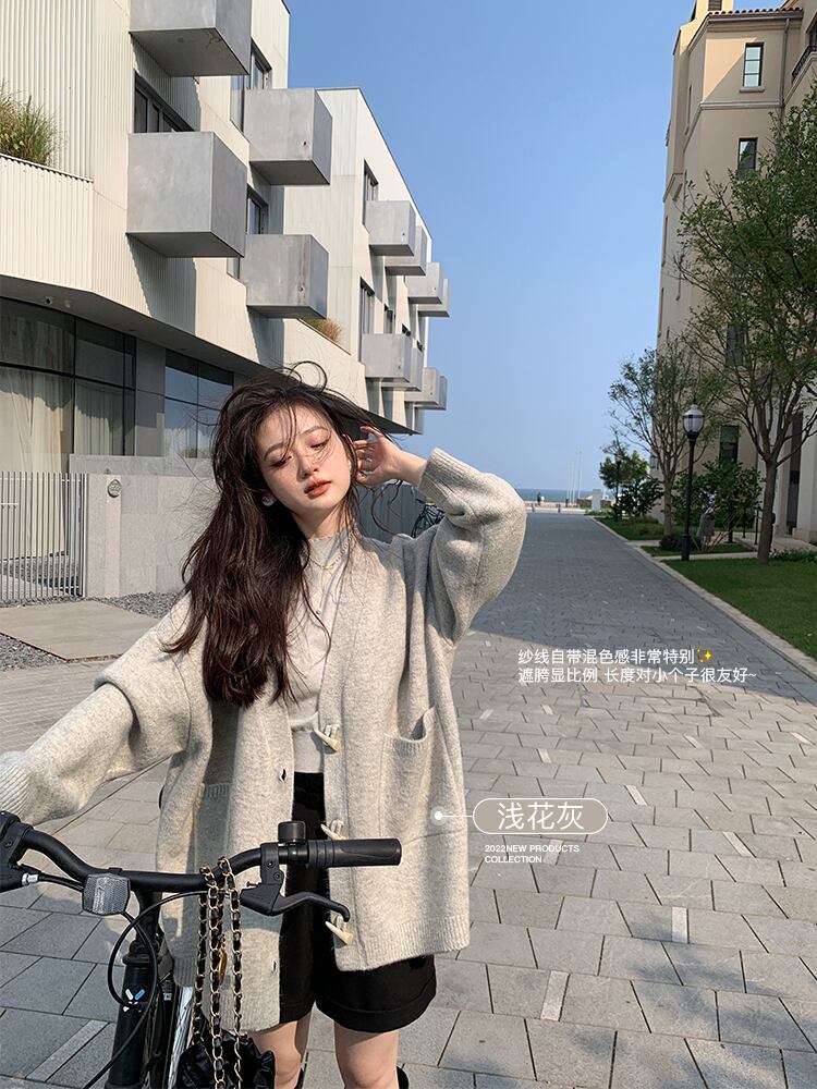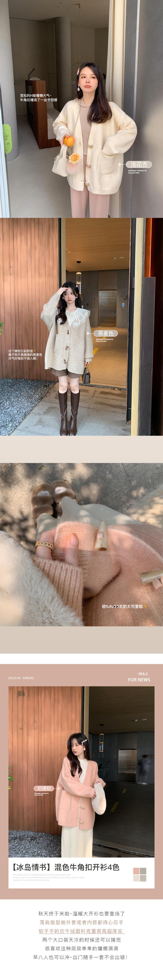 ミス シマリス [Icelandic Love Letter] ミックスカラー ホーン ボタン ニット カーディガン レディース 秋 ゆったり ゆったり セーター トップス missi20970863756