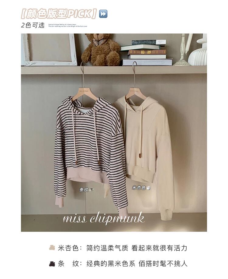 ミスシマリス【マーケットセーター】 ストライプ ショート フード付き トップス レディース 春秋 ゆったり 薄手 missi92972305951