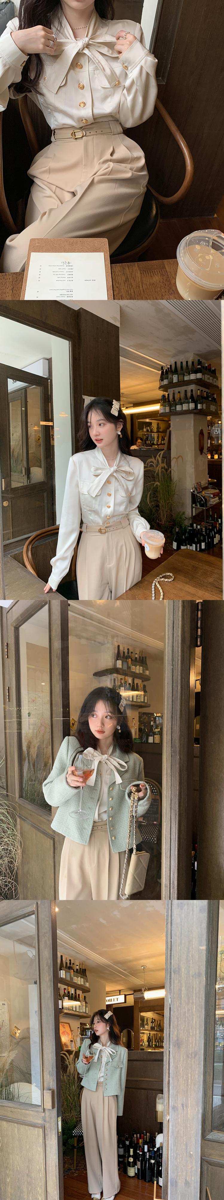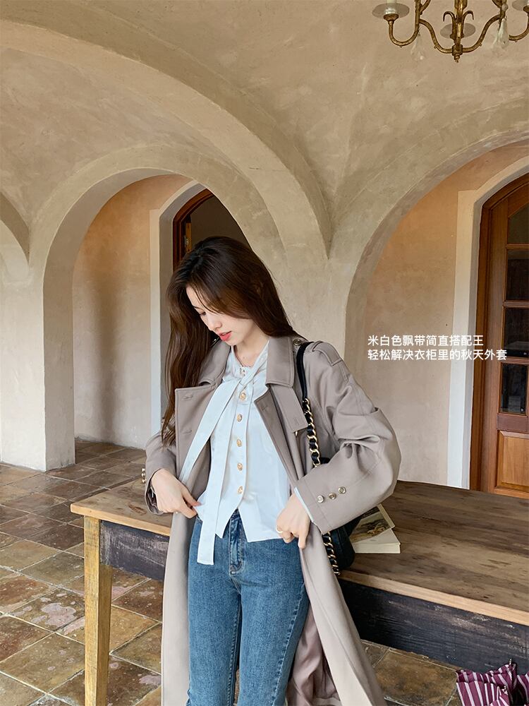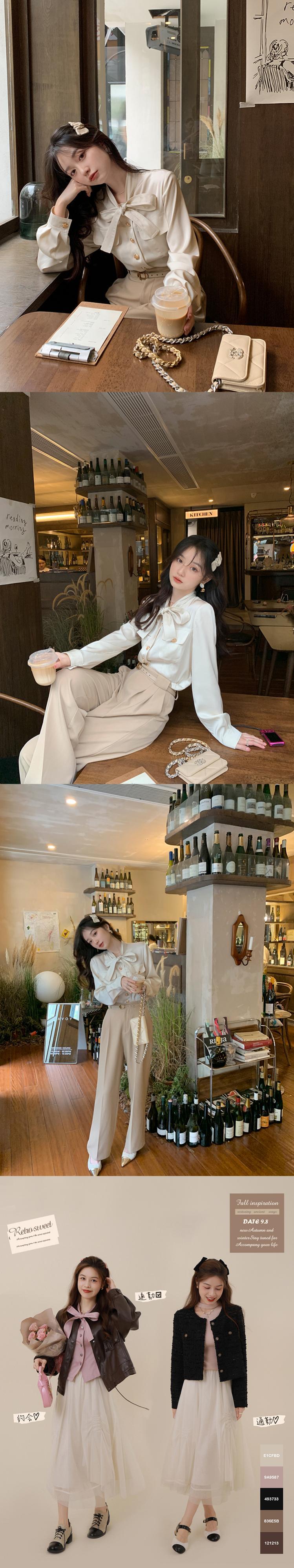 ミス シマリス [フィガロの香り] フレンチ サテン レースアップ長袖シャツ レディース秋スリム気質トップ missi98888784274