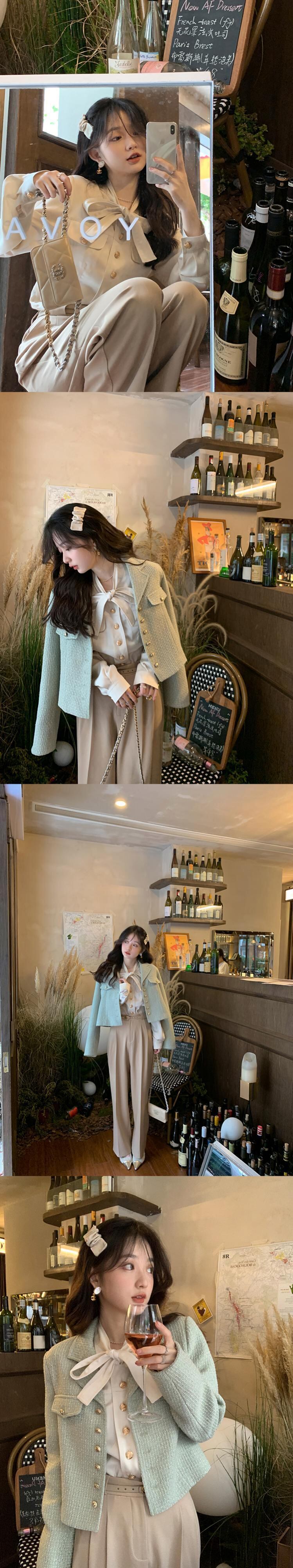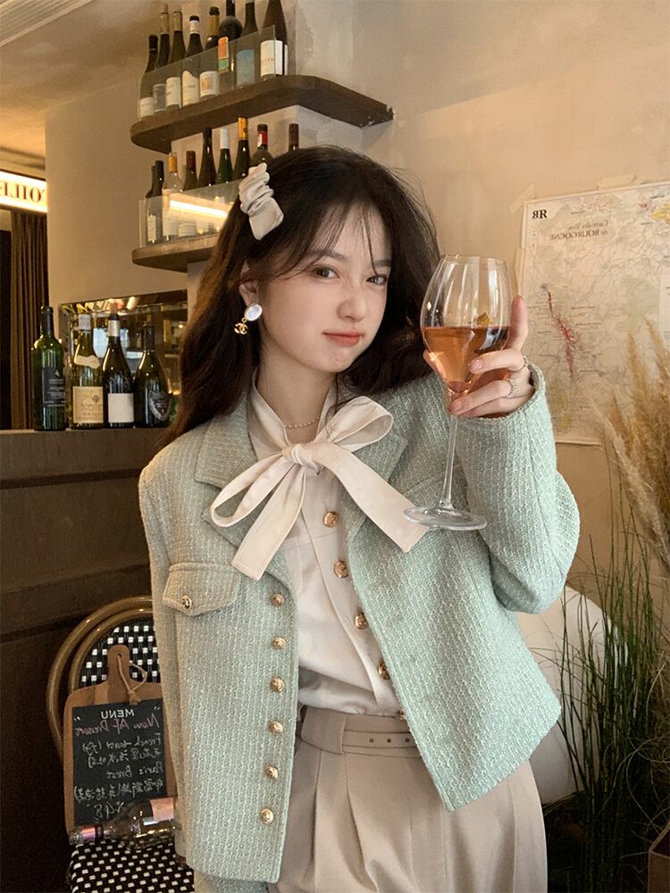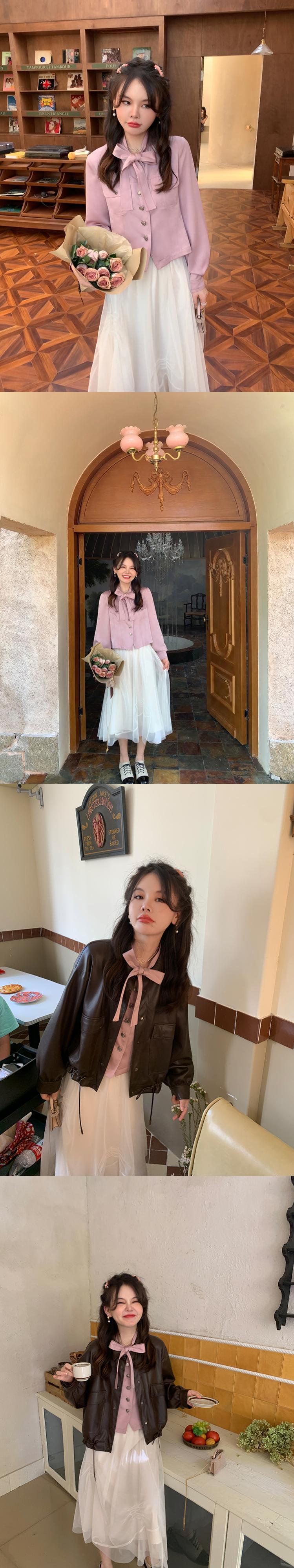 ミス シマリス [フィガロの香り] フレンチ サテン レースアップ長袖シャツ レディース秋スリム気質トップ missi98888784274