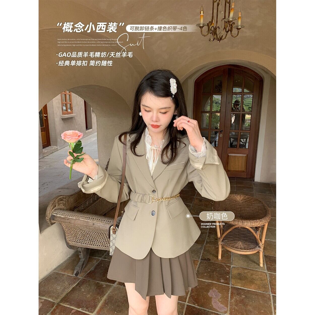 Miss Chipmunk 【コンセプト スモールスーツ】梳毛ショートコート レディース 秋口 スリム カジュアル スーツ トップス missi9997220790