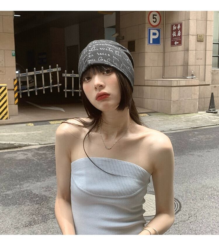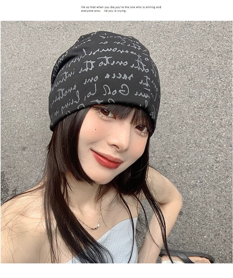 帽子女性の ese オールマッチ黒薄セクション包頭キャップ春と秋インニットネットレッドフライドストリートヒープキャップヘッドスカーフ帽子 ブラック スプリング 春物 オータム 秋物 15dd28232320443