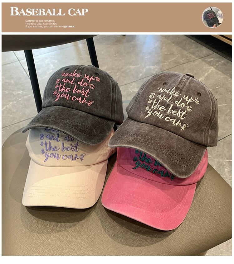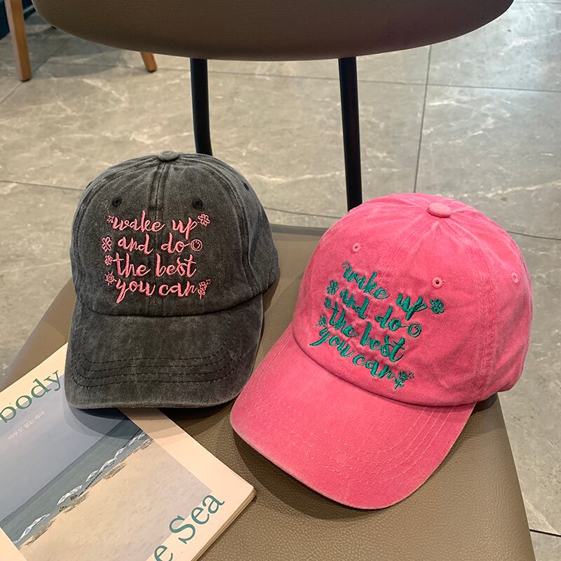 バージョンのインウォッシュレター刺繍野球帽女性アメリカンレトロ古いひさしキャップ夏サンバイザー男性 レッド 帽子 サマー 夏物 15dd64674325977